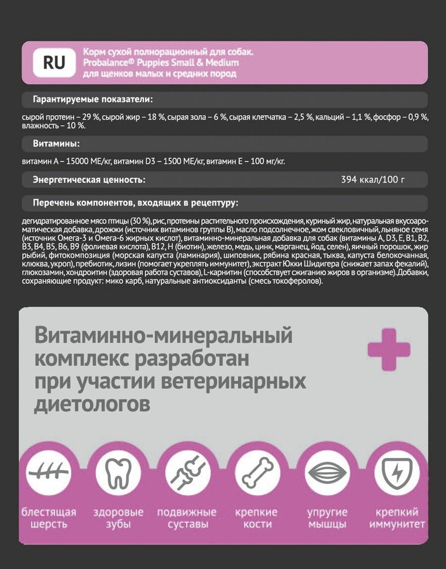 Корм сухой для щенков ProBalance Оптимальное развитие малых и средних пород 2 кг
