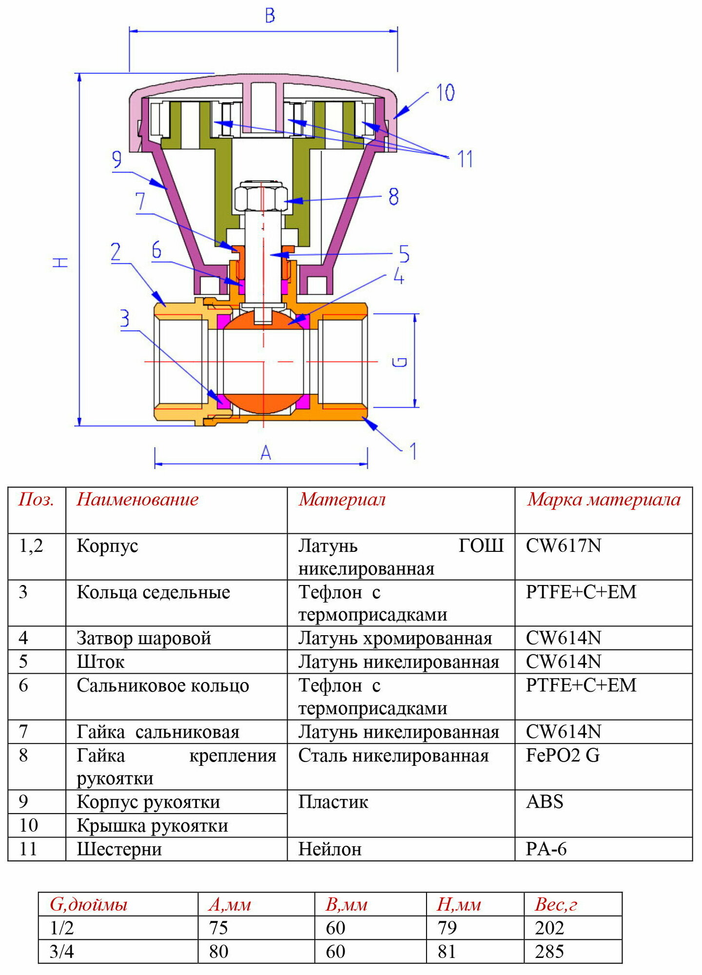 - Шаровой кран VT.252 разработан с учетом требований СП 30.13330.2012 «Внутренний водопровод и канализация зданий», предписывающего для снижения риска гидравлических ударов применять водоразборную и запорную арматуру, конструкция которой обеспечивает плавное открывание и закрывание потока воды (п. 7.1.4). Конструктивно шаровой кран с плавным управлением VT.252 представляет собой кран для воды серии VALTEC BASE, где вместо флажковой стальной рукоятки или ручки-бабочки предусмотрен маховик со встроенным планетарным редуктором, не позволяющим произвести резкое открытие или закрытие крана. При повороте маховика на 180° шаровой затвор открывается или закрывается, т.е. поворачивается на 90°. Резьба присоединения крана – внутренняя/внутренняя.