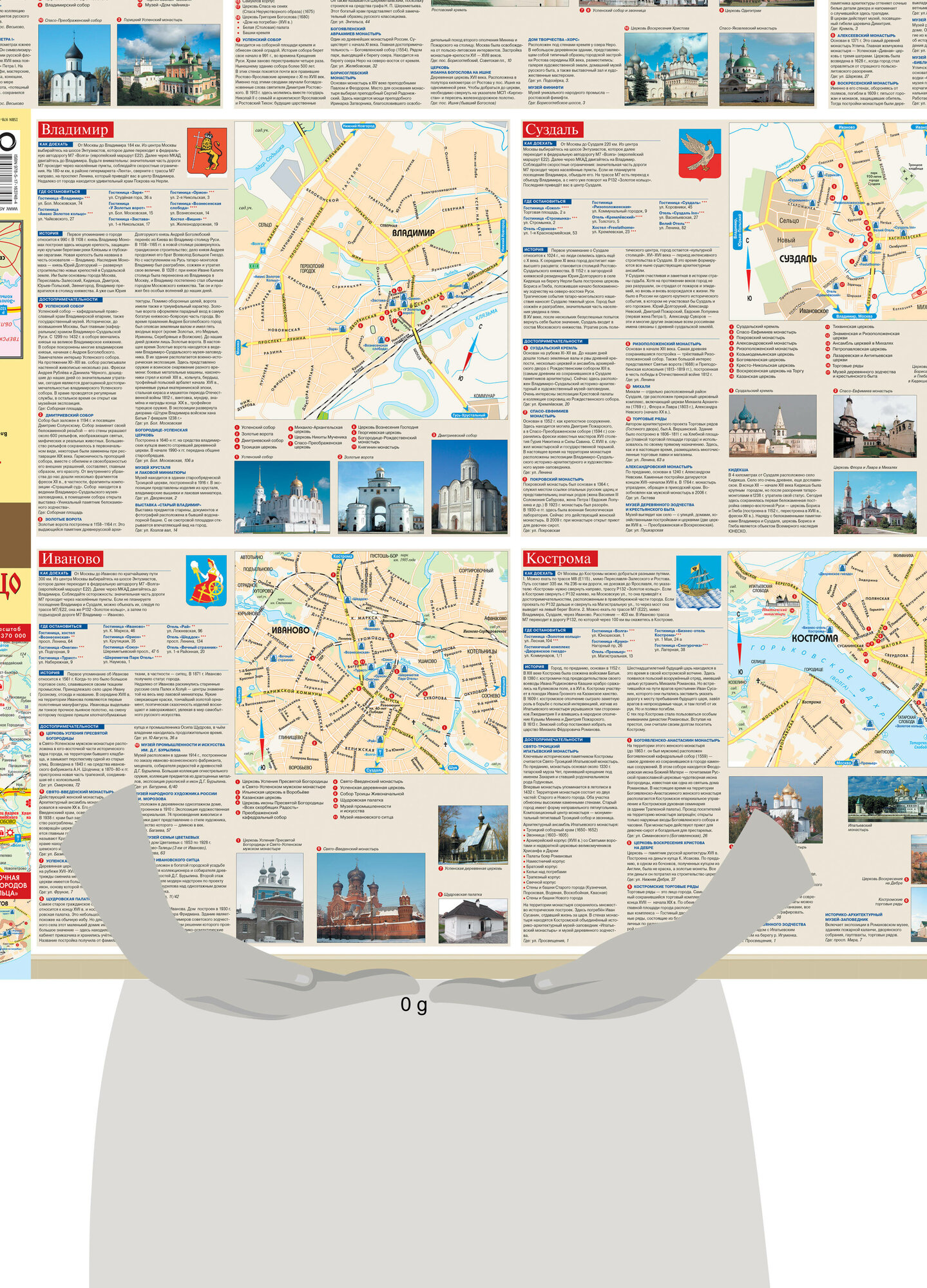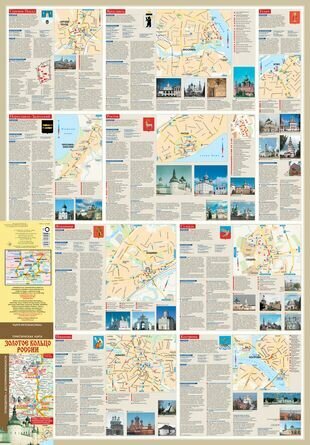 Складная туристическая карта "Золотое кольцо России" посвящена уникальному региону нашей страны, расположенному в междуречье Волги и Оки, где сосредоточены древние русские города, без которых немыслима история России. Масштаб карты 1:370 000 (в 1 см 3,7 км) и специально разработанная система условных обозначений позволили во всем многообразии представить имеющиеся в городах Золотого кольца исторические, архитектурные, религиозные и культурные памятники, многие из которых входят в список объектов Всемирного наследия ЮНЕСКО. На карте также подробно показана сеть автомобильных и железных дорог, обеспечивающих доступ к каждому из городов. Оборот карты представляет собой путеводитель по городам Золотого кольца, содержание которого составляют описания автомобильных маршрутов, исторические справки о каждом городе, адреса и месторасположение гостиниц, схемы городов Золотого кольца, их главные достопримечательности и музеи.