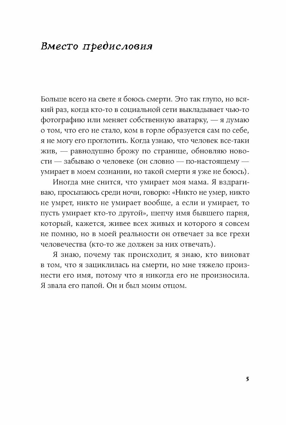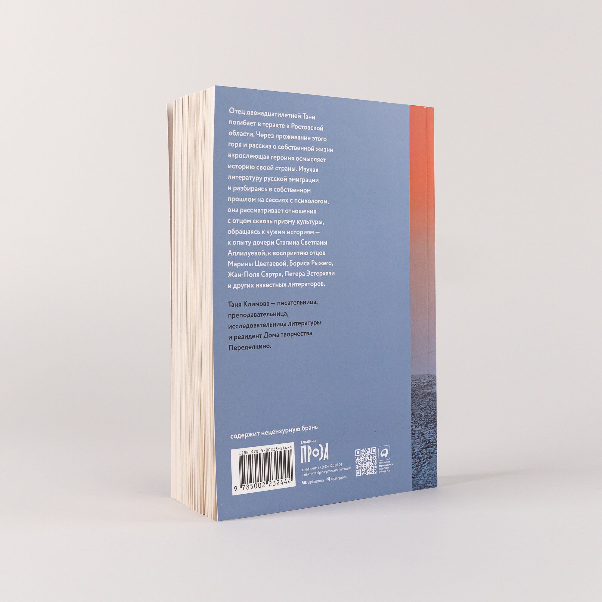 Отец двенадцатилетней Тани погибает в теракте в Ростовской области. Через проживание этого горя и рассказ о собственной жизни взрослеющая героиня осмысляет историю своей страны. Изучая литературу русской эмиграции и разбираясь в собственном прошлом на сессиях с психологом, она рассматривает отношения с отцом сквозь призму культуры, обращаясь к чужим историям — к опыту дочери Сталина Светланы Аллилуевой, к восприятию отцов Марины Цветаевой, Бориса Рыжего, Жан-Поля Сартра, Петера Эстерхази и других известных литераторов.