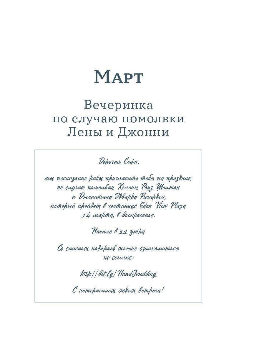 Софи уже долгое время одна. Друзья остепенились, родители делают недвусмысленные намеки и кажется, что ее анонимная колонка об отношениях гораздо успешнее ее реальных свиданий. Но теперь, когда приближается свадьба сестры, она твердо намерена не оставаться в одиночестве. И если она не сможет найти свою половинку вовремя, придется сжульничать и найти фейкового парня.