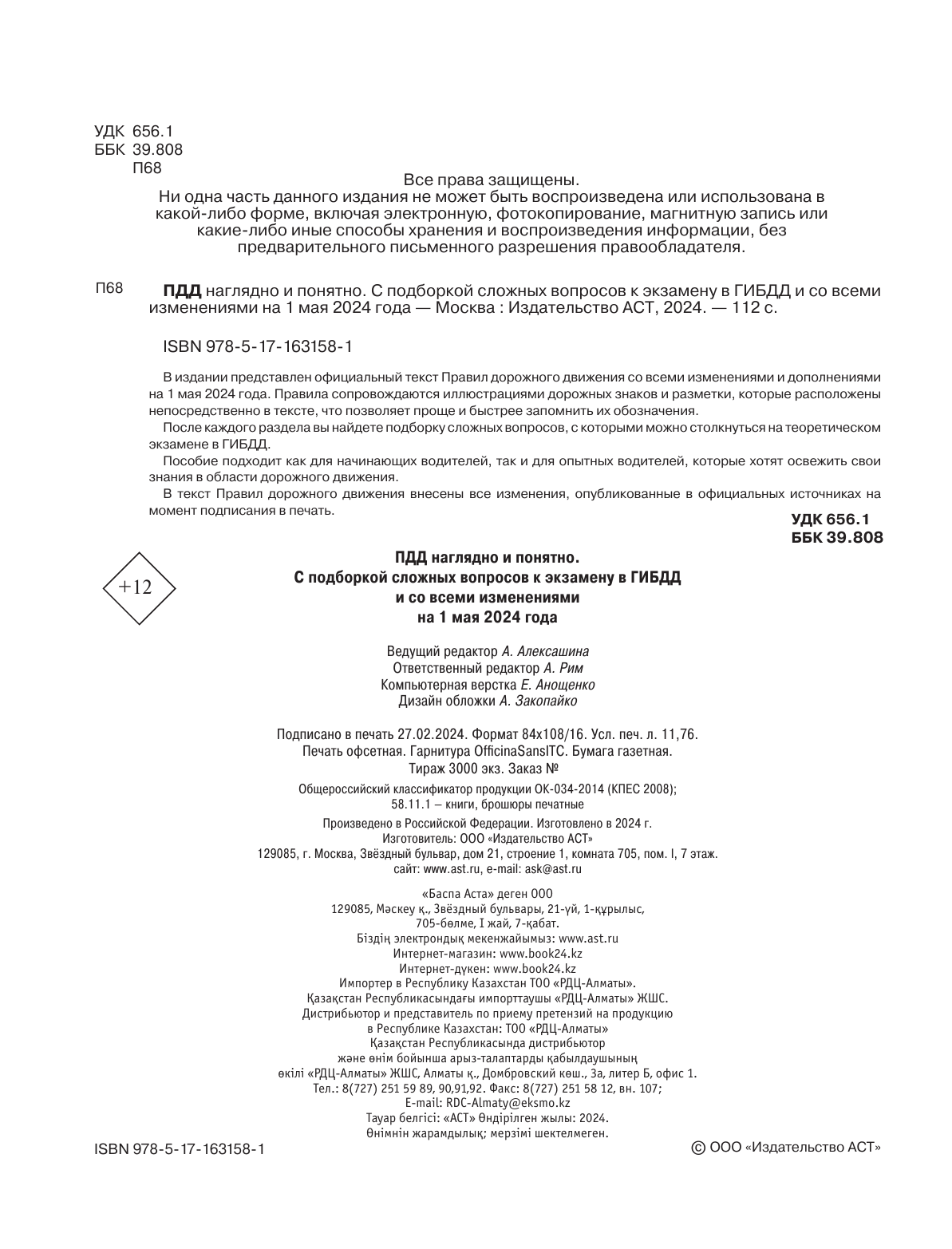 ПДД наглядно и понятно. С подборкой сложных вопросов к экзамену в ГИБДД и со всеми изменениями на 1 мая 2024 года (Группа авторов); Издательство АСТ, 2024
