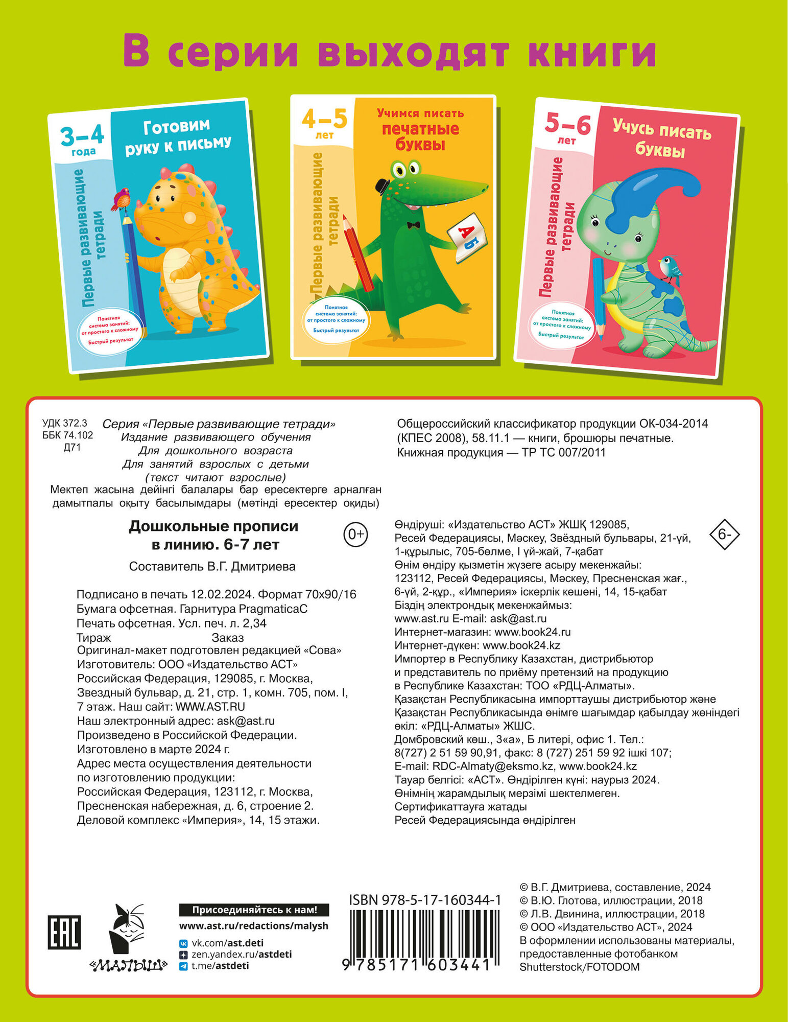 Дошкольные прописи в линию. 6-7 лет (Дмитриева Валентина Геннадьевна); Сова. Малыш (Обучающая и развивающая литература), 2024
