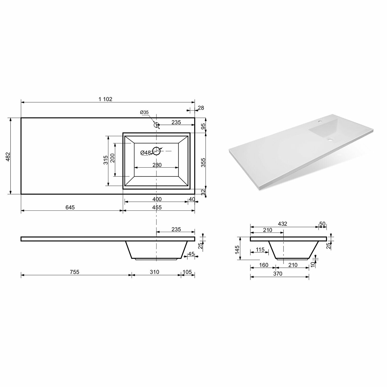 | Форма раковины | прямоугольная |