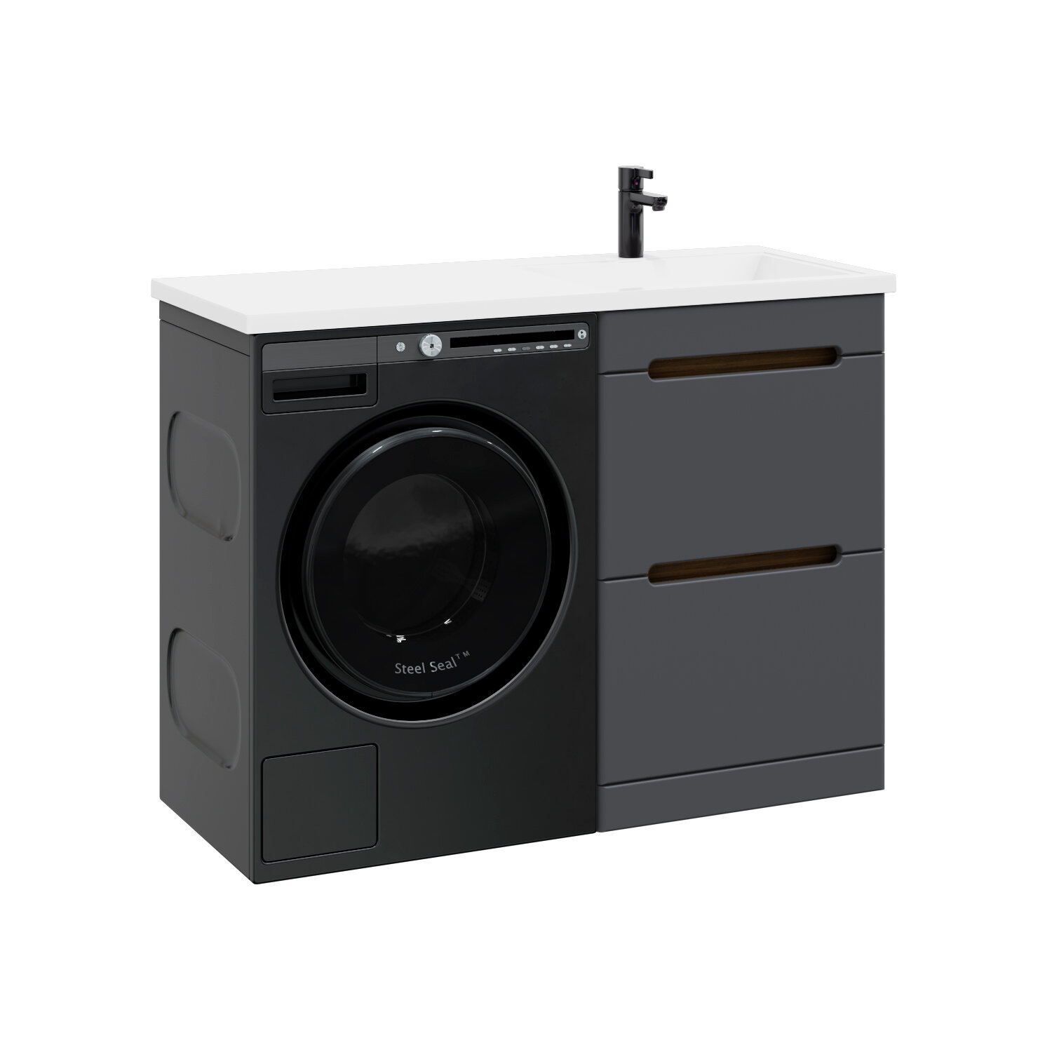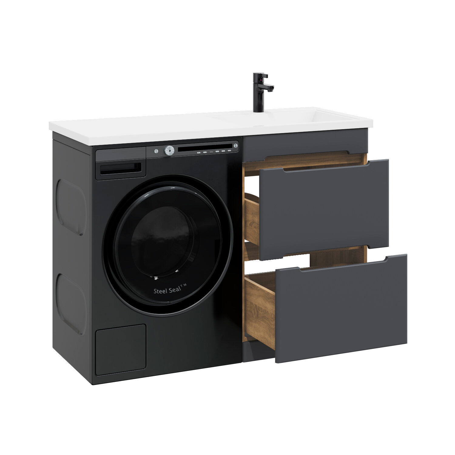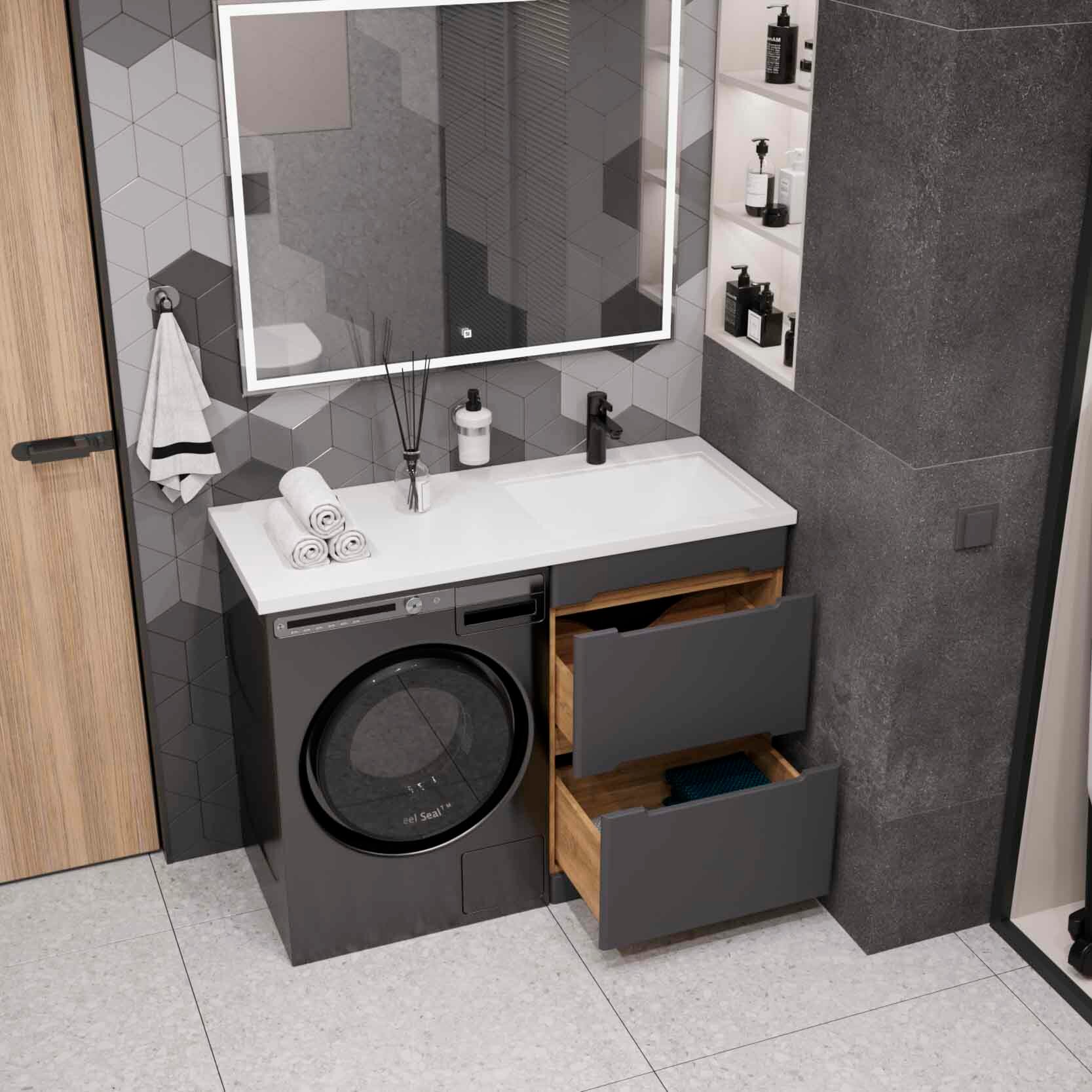 Тумба с раковиной SanStar Darko 50 напольная дуб вотан/графит софт (раковина Даллас 110 R) Darko 430.1-1.4.1.