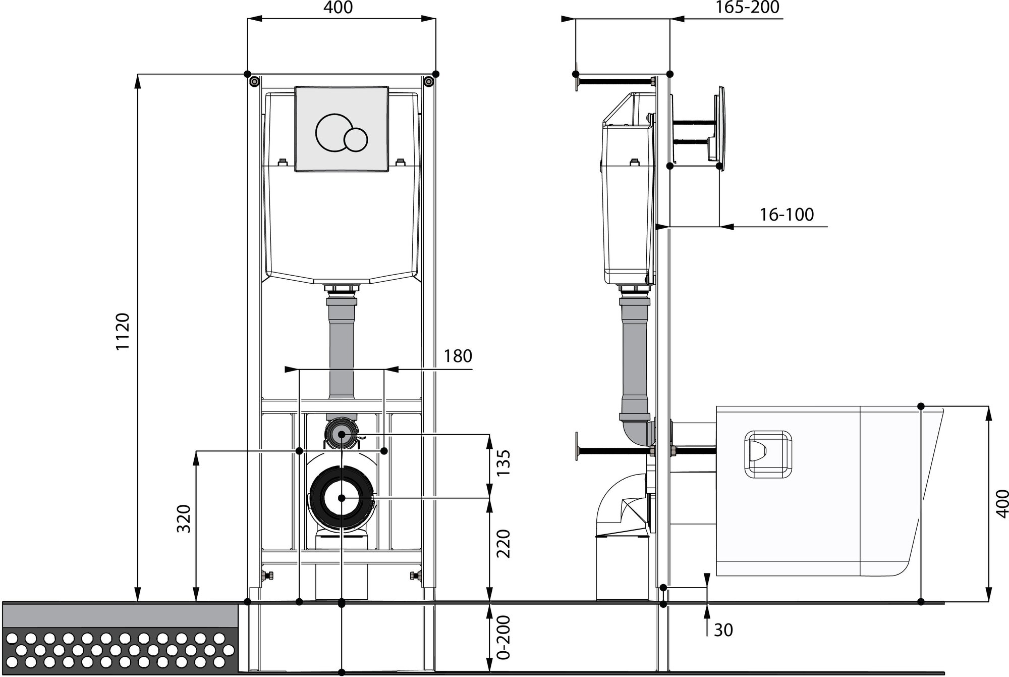 - Размеры инсталляции (ШхВхГ): 400х1120х300 мм.