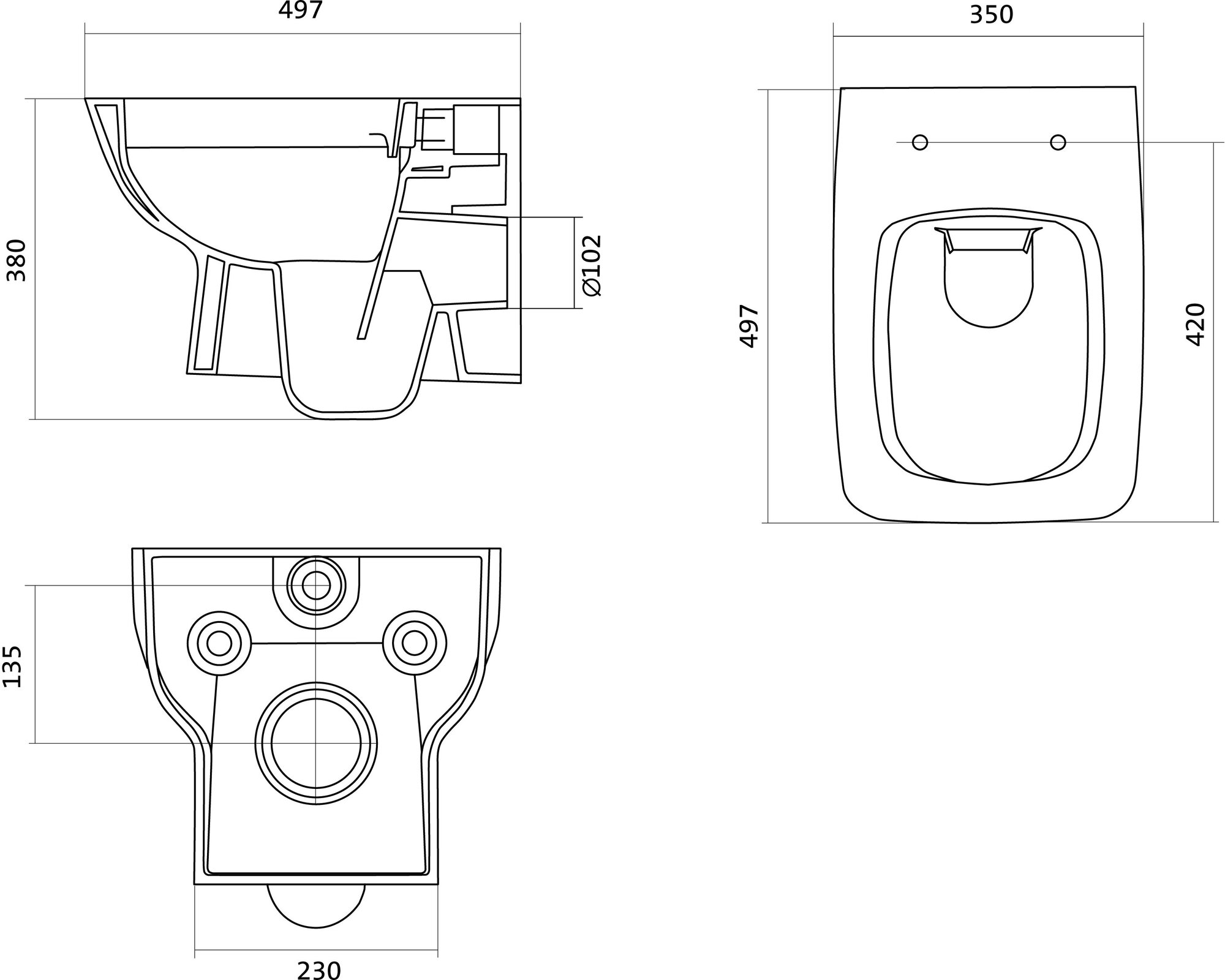 - Сиденье из дюропласта с плавным опусканием крышки (Микролифт), быстросъемное, тонкое.