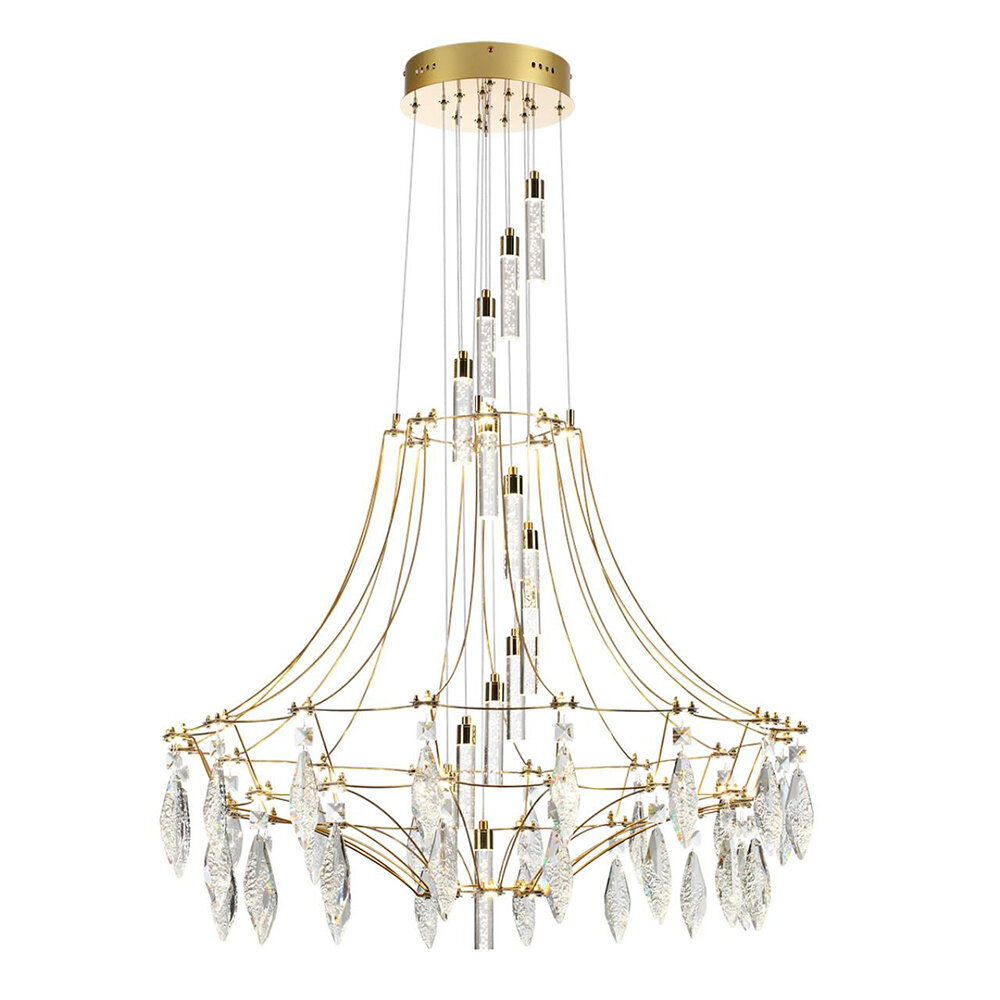 Арматура люстры выполнена из металла и хрусталя, а цвет арматуры – золотой. Это придает люстре роскошный и элегантный вид.