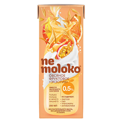 Nemoloko питьевой продукт, богатый пищевыми волокнами, витаминами, микро- и макроэлементами. Nemoloko овсяное фруктовое Экзотик это то, что нужно для отличного настроения, оно освежает и радует вкусом.