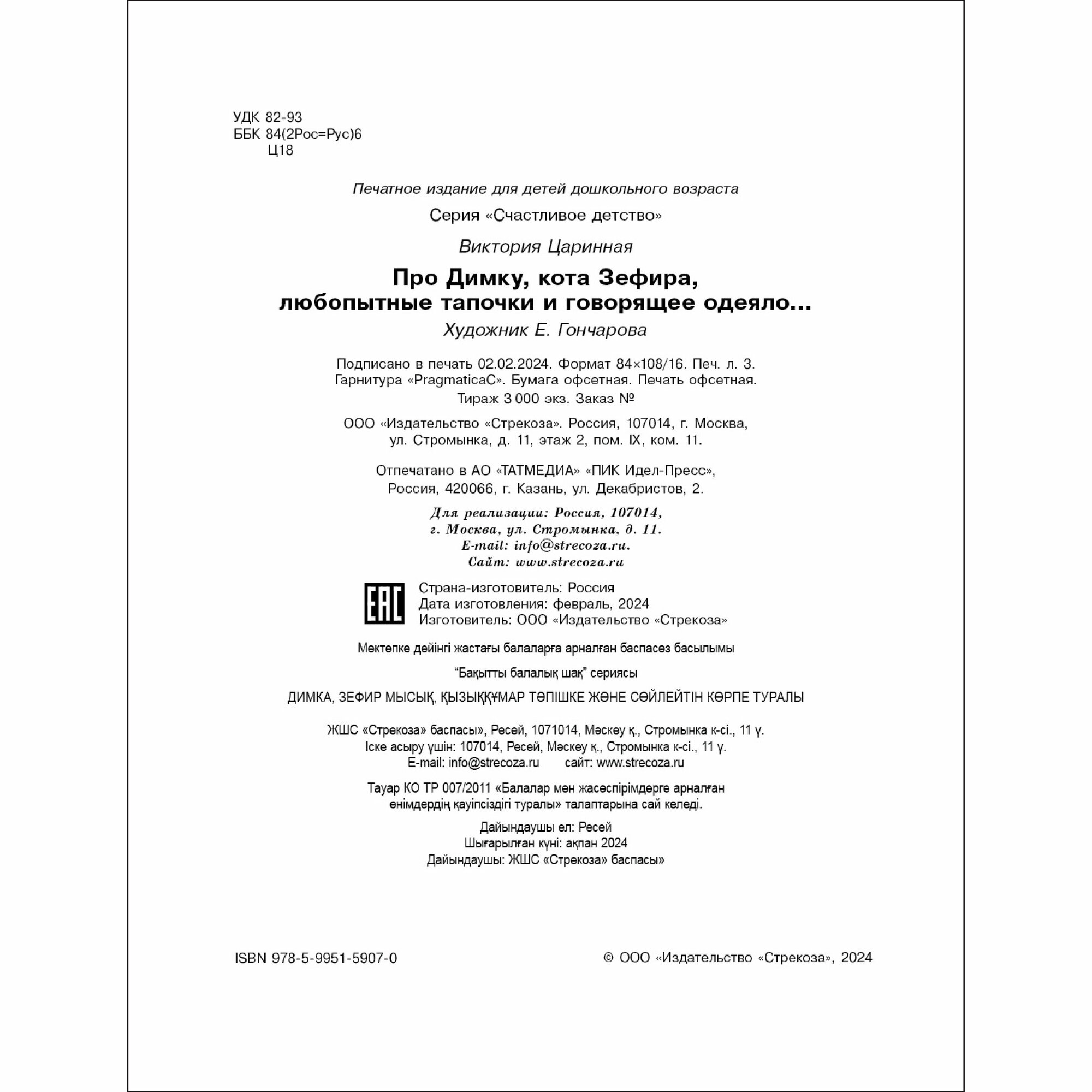 Про Димку кота Зефира любопытные тапочки и говорящее одеяло. (Царинная Виктория Анатольевна); Стрекоза, 2024