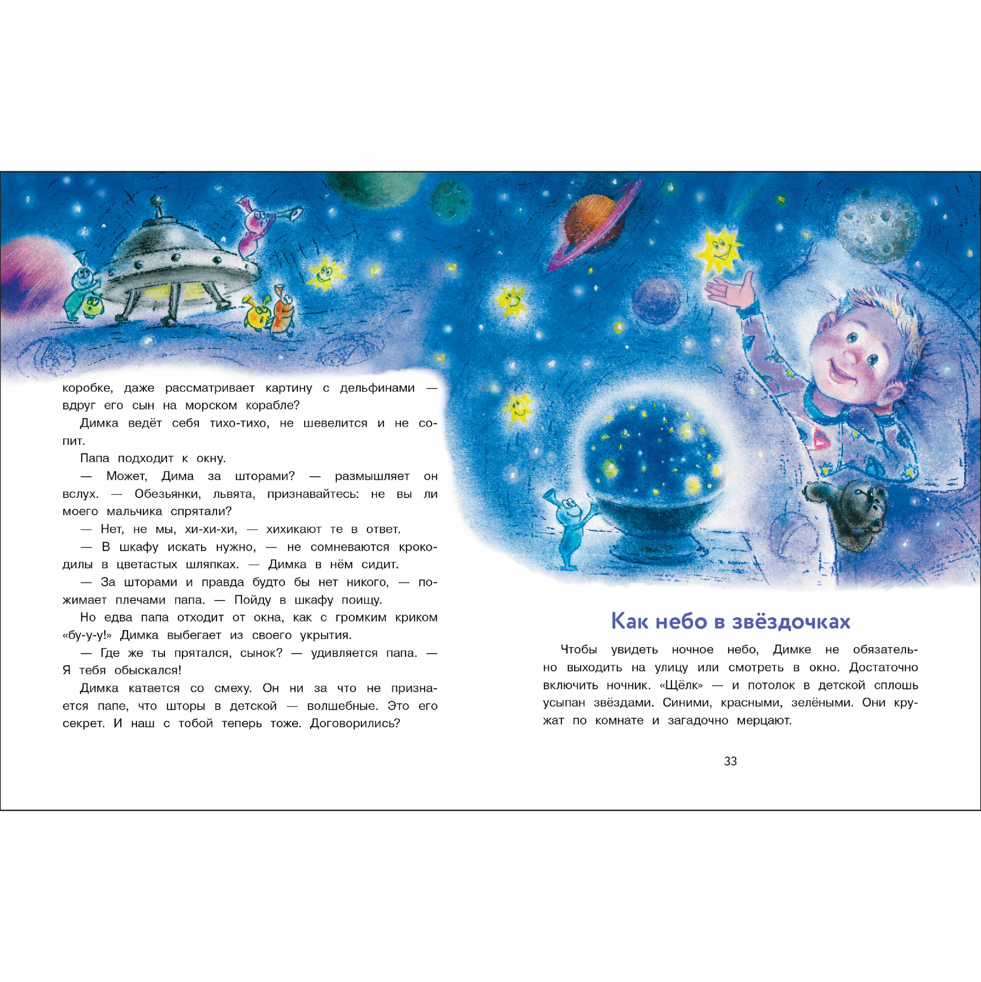 Детство - самая счастливая пора. Жизнь маленького человека полна чудес и волшебства. Вы думаете, у Димки обычная детская? А вот и нет! В ней оживают дельфины, нарисованные на картине, шторы помогают сделаться невидимым, в подушке хранятся самые невероятные сны о приключениях и путешествиях, а одеяло не только согревает, но и дает полезные советы. Но самое главное - рядом с Димкой близкие люди. Они любят его, поддерживают и дарят радость, которая запомнится на всю жизнь. Художник Е. Гончарова. Книга для детей дошкольного возраста