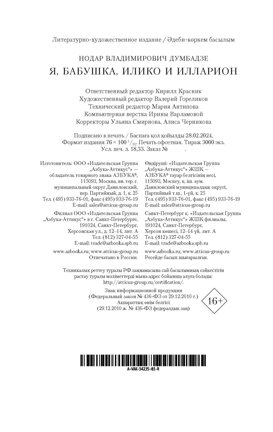 Я бабушка Илико и Илларион (Нодар Думбадзе); Азбука, 2024