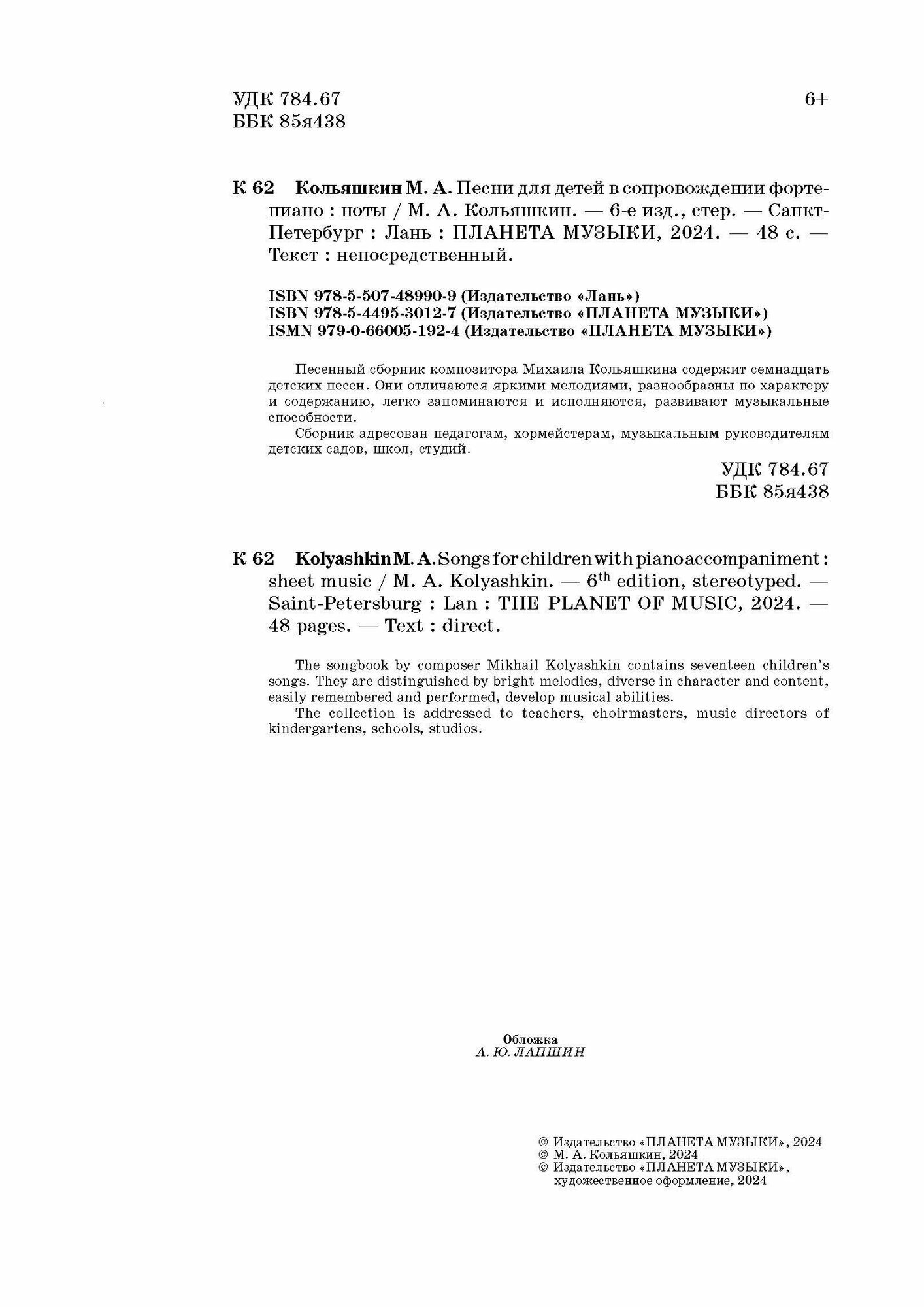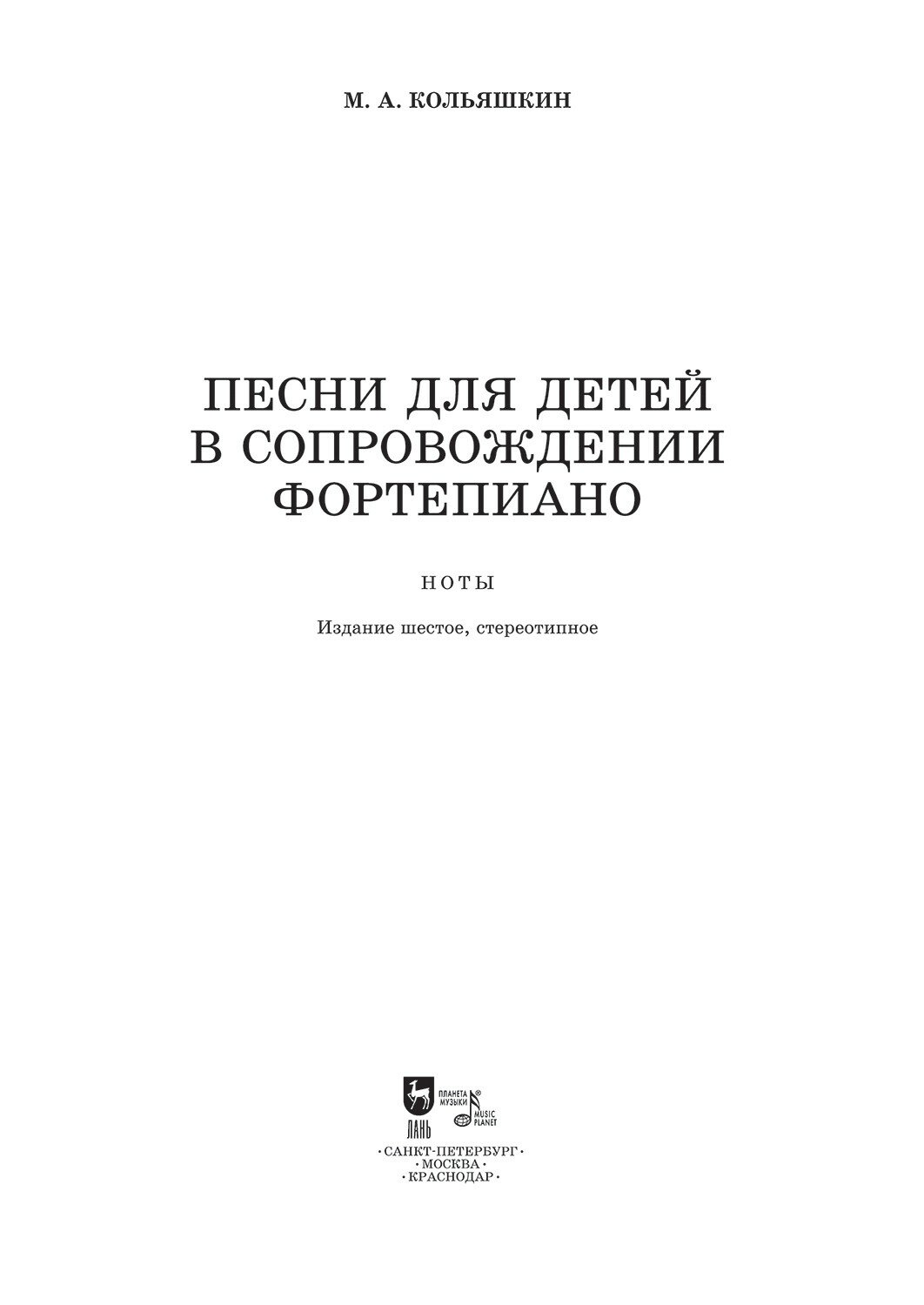Песни для детей в сопровождении фортепиано (М. А. Кольяшкин); Издательство «Планета музыки», 2024
