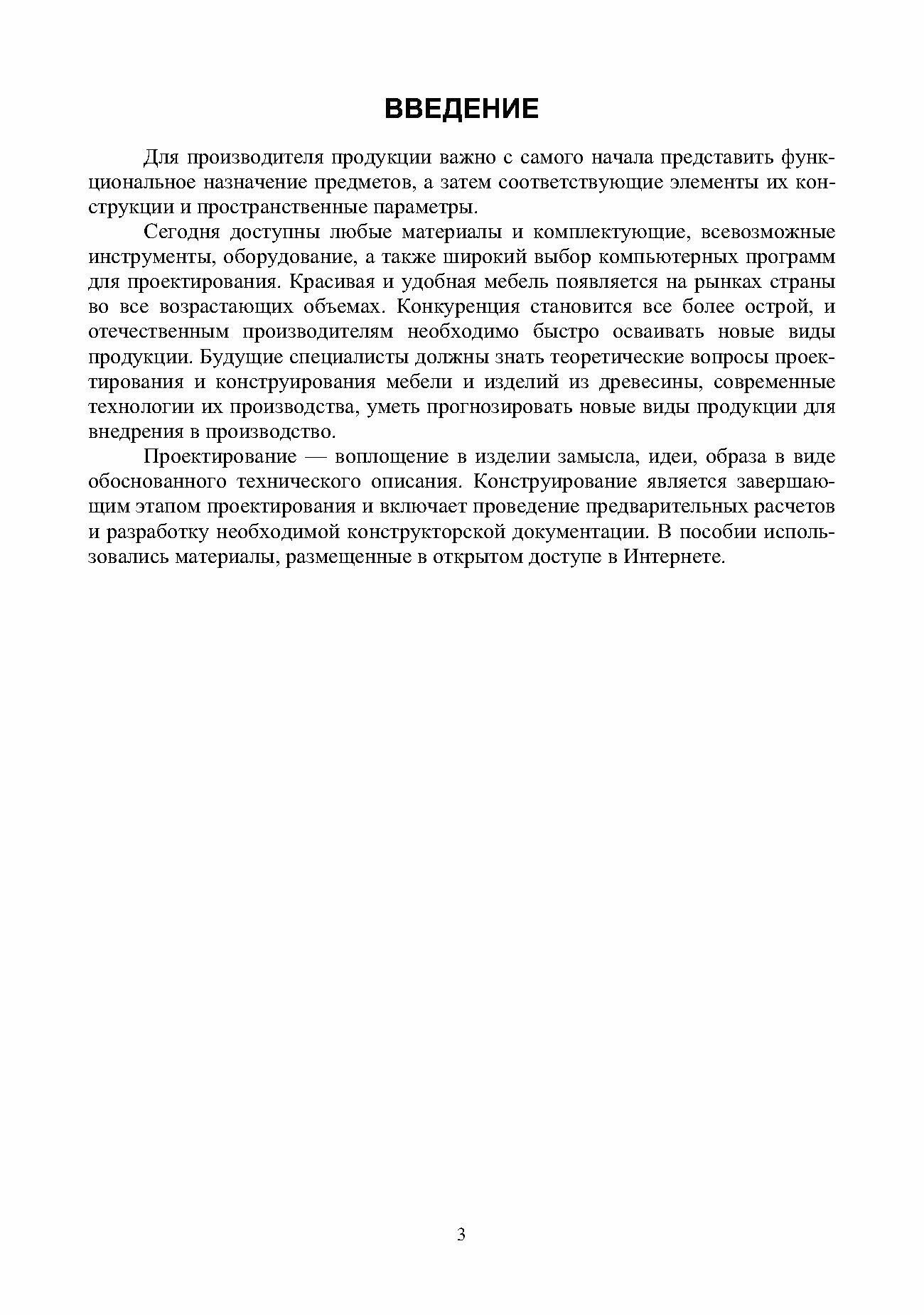 Изложены основы проектирования и конструирования мебели, дана методика расчета размеров деталей, показаны особенности проектирования мебели по индивидуальным заказам, описаны применяемые в производстве мебели материалы и фурнитура, механизмы трансформации диван-кроватей, приведены примеры проектной и конструкторской документации. Соответствует современным требованиям Федерального государственного образовательного стандарта среднего профессионального образования и профессиональным квалификационным требованиям. Учебное пособие предназначено студентам колледжей и техникумов, обучающихся по специальностям «Технология деревообработки», «Мастер столярного и мебельного производства», а также инженерно техническим работникам деревоперерабатывающих и мебельных предприятий.