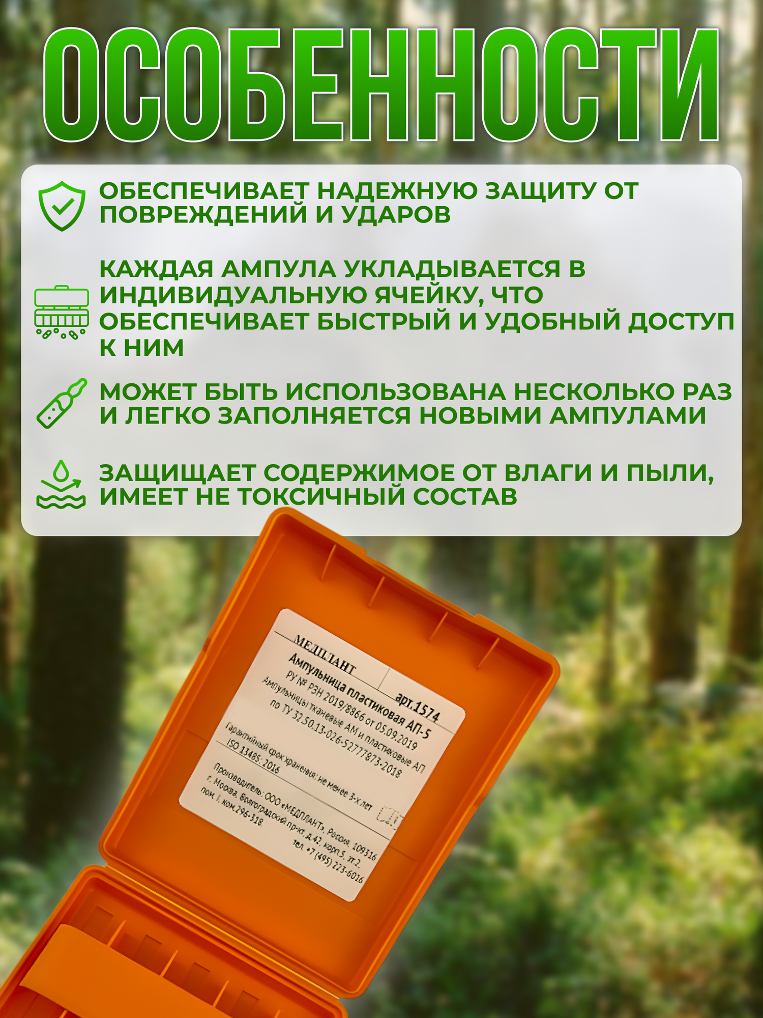 Ампульница - это медицинское изделие для безопасного хранения ампул с лекарственными препаратами. Она обеспечивает надежную защиту от повреждений и ударов, что особенно важно в экстремальных условиях.Комплектация (АП)-5 рассчитана на 5 ампул по 5 мл.В состав аптечки индивидуальной военной входят различные армейские аксессуары, такие как футляр - контейнер. Он помогает организовать и удобно хранить медикаменты, обеспечивая быстрый доступ к ним во время операций или экстренной помощи.Аптечка должна быть многофункциональной и содержать все необходимое армейское снаряжение. Это позволяет быстро и эффективно оказывать помощь в полевых условиях.Органайзер играет важную роль в обеспечении безопасного хранения и организации препаратов. Она помогает обеспечить мгновенный доступ к средствам помощи, что является важным в экстренных ситуациях. Товар с легкостью помещается в медицинскую сумку с наполнением, соседствуя с ипп, жгутами и прочими средствами, а также в подсумок.Укладка должна быть тщательно организована. Это помогает сэкономить время и способствует эффективному лечению в экстремальных условиях.Выводящая ампульница пластиковая является одним из вариантов ампульницы, которая предлагает удобство использования и безопасное извлечение медикаментов. Она может быть использована несколько раз и легко заполняется новыми ампулами. Такая ампульница идеально подходит для использования в тактической медицине, где быстрый доступ к медицинским препаратам может спасать жизни.Товар отличное дополнение к автомобильной аптечке и стандартной укладке для работников скорой.