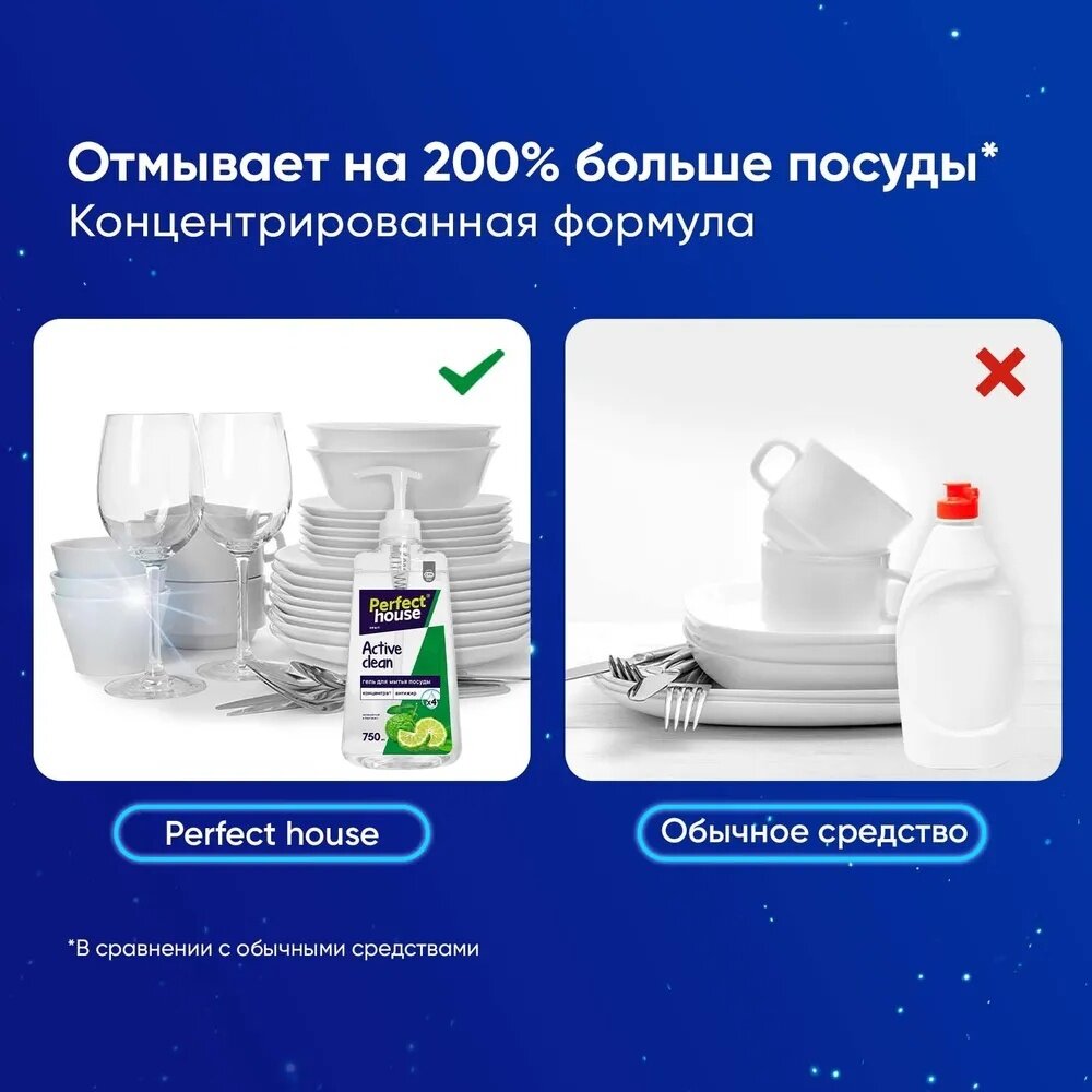 Жидкий гель для мытья посуды Active Clean от бренда Perfect House - это кухонный помощник, разработанный специально для борьбы с жиром и нагаром. В составе жидкости содержится в 4 раза больше ингредиентов, которые отмывают самые сильные загрязнения. Мощная концентрированная формула с высоким содержанием моющих компонентов образует густую пенку и снижает расход продукта. Европейские отдушки имитируют аромат зеленого чая и бергамота, придавая приятный и свежий запах, который создаст на вашей кухне приятную атмосферу. Полностью смывается водой, не оставляя разводов на поверхностях. Всего несколько капель чистящего средства позволит мгновенно справиться с остатками еды и следами от жирных пятен. Наш универсальный супер-концентрат предназначен для мойки и очистки детских бутылочек, игрушек, тарелок и столовых приборов. Он также идеально подходит для глубокой чистки бокалов из стекла, кастрюль из нержавеющей стали, стеклокерамики и стеклянных изделий. Бутылка с дозатором делает использование геля максимально удобным и экономичным. Он необходим также для устранения неприятных запахов. Лимонная кислота обеспечивает эффективное удаление даже самых устойчивых жировых отложений. Она помогает вашей посуде вернуть безупречный вид, придавая ей сияние и блеск. Эффективно работает в холодной и жесткой воде, а также обеспечивает защиту кожи рук от сухости и раздражения каждого члена семьи - как взрослых, так и детей. Это помогает сохранить ее мягкой и нежной даже при частом использовании.