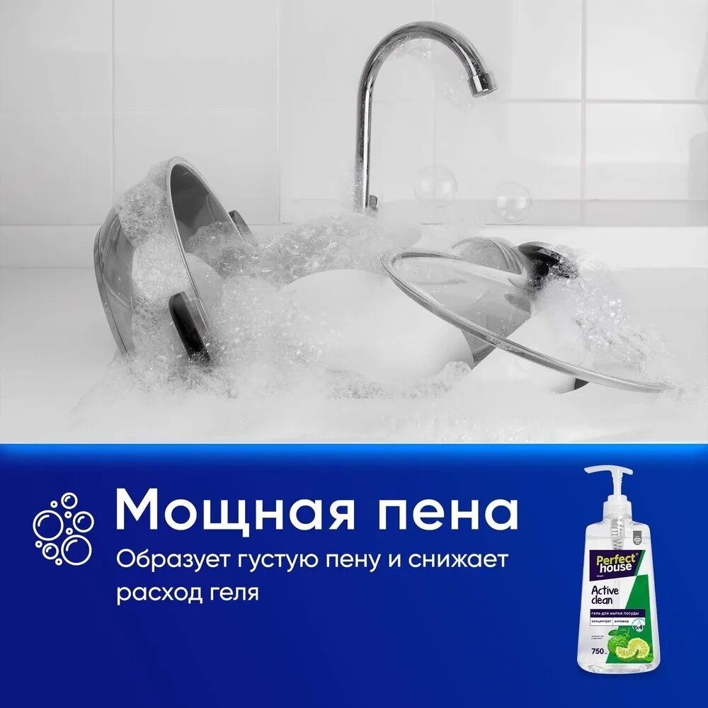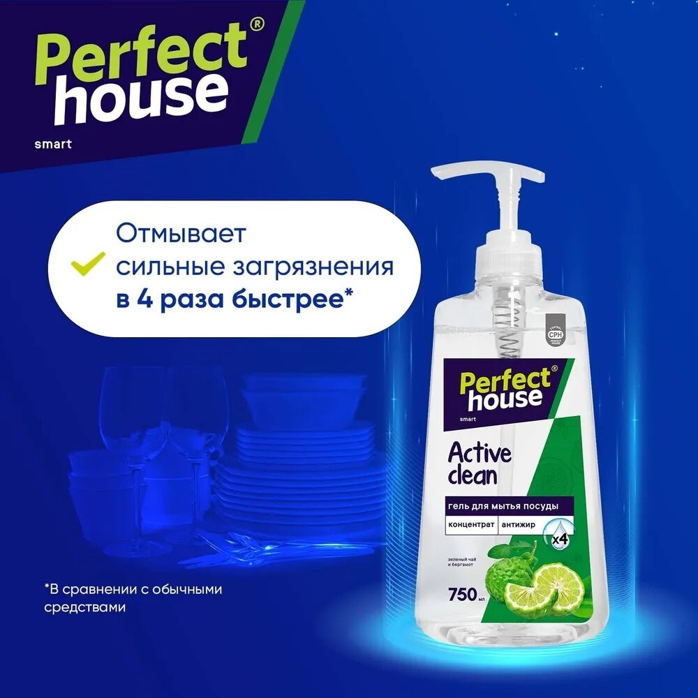 Гель-концентрат для мытья посуды Perfect House Active Clean зеленый чай и бергамот 750 мл