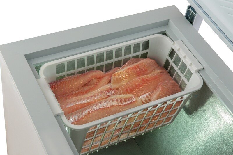 В этом морозильнике объемом 345 литров вы заморозите огромное количество мяса, овощей и ягод. Корзины усиленной конструкции очень прочные и идеально подходят для хранения продуктов внушительных объемов.