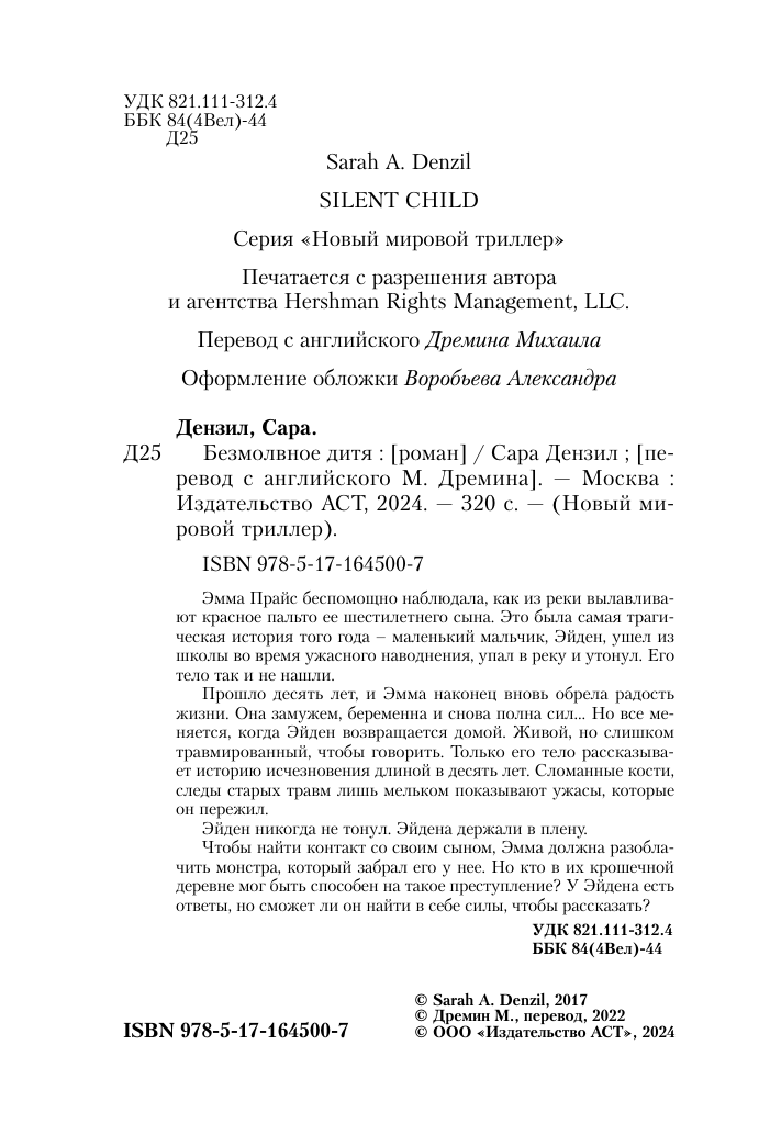 Книга: Безмолвное дитя (Сара Дензил); АСТ, Жанры, 2025