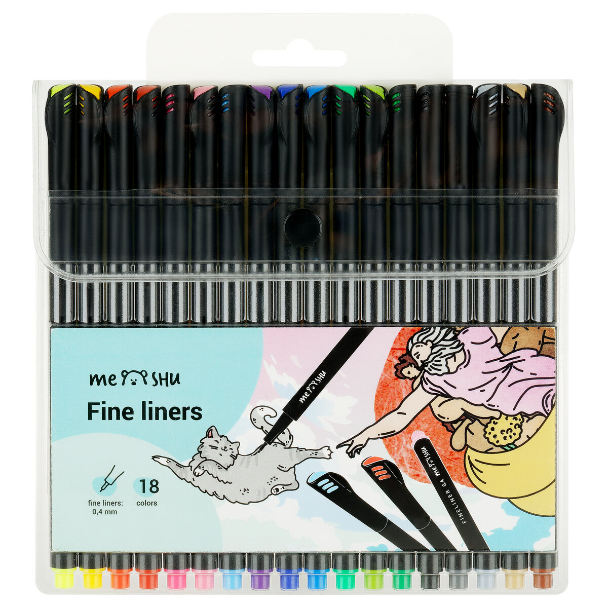 Набор капиллярных ручек MESHU 18 цв. 04 мм европодвес (MS_53579)