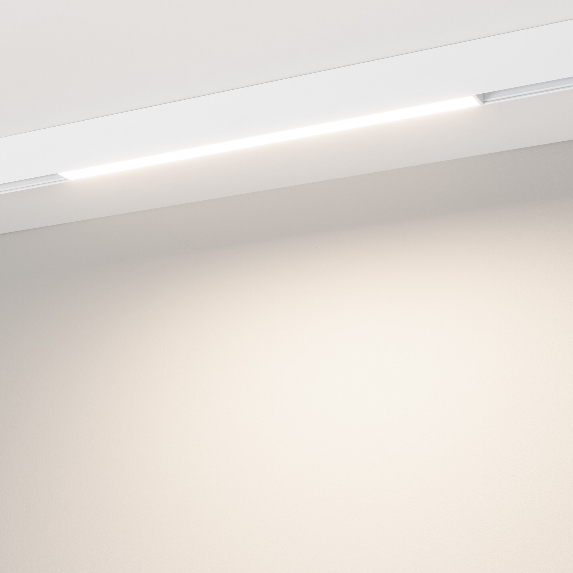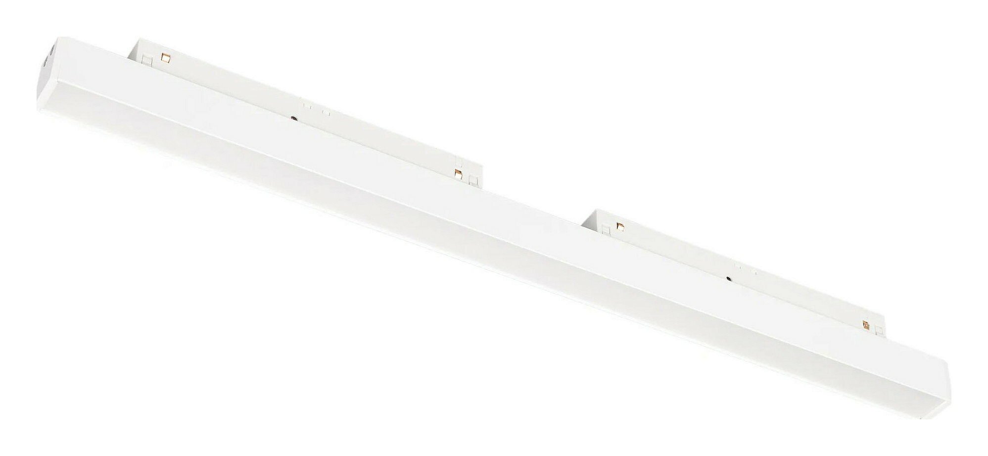 Светильник для магнитных треков MAG-ORIENT шириной 26 мм. Мощность 12 Вт, св. поток 660 лм, 55 лм/Вт, дневной 4000 K, CRI>90, угол 80°, напряжение питания 48 В. Белый прямоугольный корпус из металл, экран поликарбонат, степень защиты IP20. Размер: длина 462 мм, ширина 22 мм, высота 42 мм. Монтаж на трек MAG-ORIENT. Пульсация