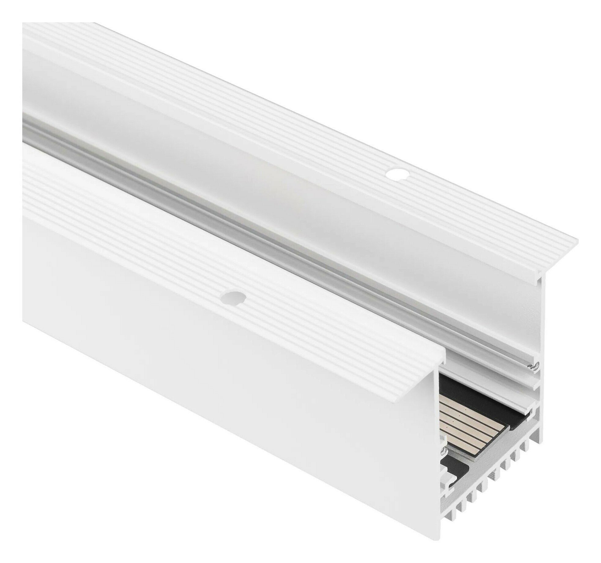 Встраиваемый магнитный трек с фланцем с управлением по DALI, длина 2040мм. DC24V. Материал алюминий, цвет белый. Две заглушки в комплекте. Размер ДxШxВ: 2000x45x60мм. Размер (с учетом заглушек и фланцев) ДxШxВ: 2040x75x60мм. Установка в отверстие ДхШхВ 2015x50x70мм.