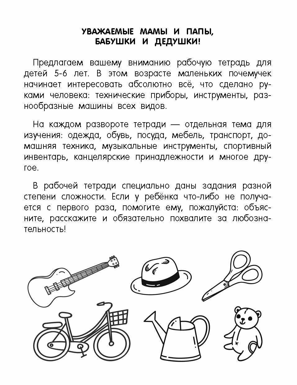 Давайте вместе поддержим исследовательский интерес юных учёных! Рабочая тетрадь «Окружающий мир. Предметы» состоит из занимательных задачек, лабиринтов, головоломок для тренировки памяти, внимания, логики и мышления. На каждом развороте тетради — отдельная тема для изучения: одежда, обувь, посуда, мебель, транспорт, домашняя техника, музыкальные инструменты, спортивный инвентарь, канцелярские принадлежности и многое другое. Обучение в игровой форме поможет малышам легко и быстро усвоить новые знания и сделать свои первые выводы о закономерностях окружающего мира.