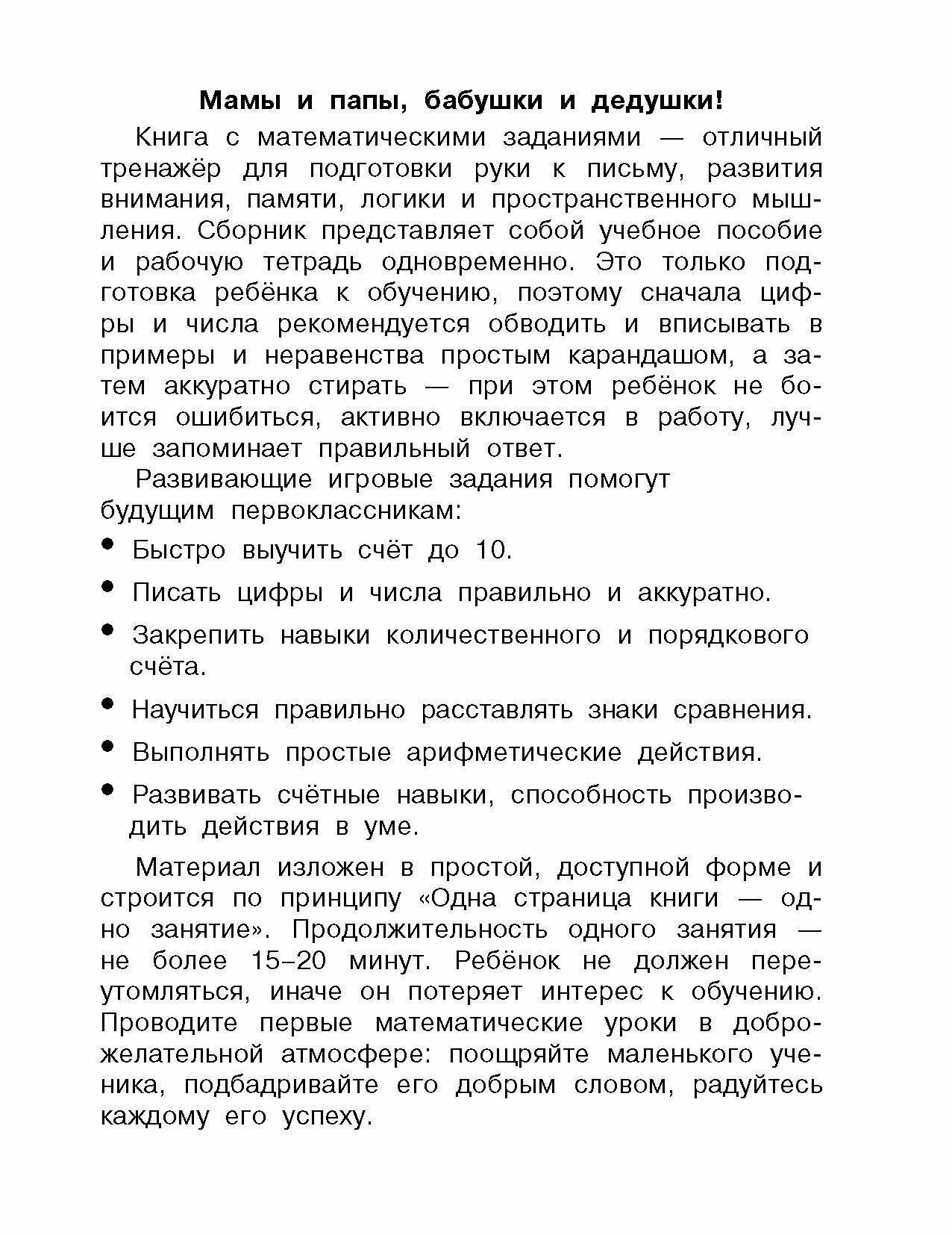 В серии «Первые развивающие тетради» — книги для любознательных малышей и заботливых родителей. Рабочая тетрадь «Считаю до 10. 5–6 лет» представляет интерес для будущих первоклассников, а также их родителей, — игровые задания развивают интеллект, формируют математические представления и ориентацию в пространстве, закрепляют правила выполнения простых арифметических действий.
