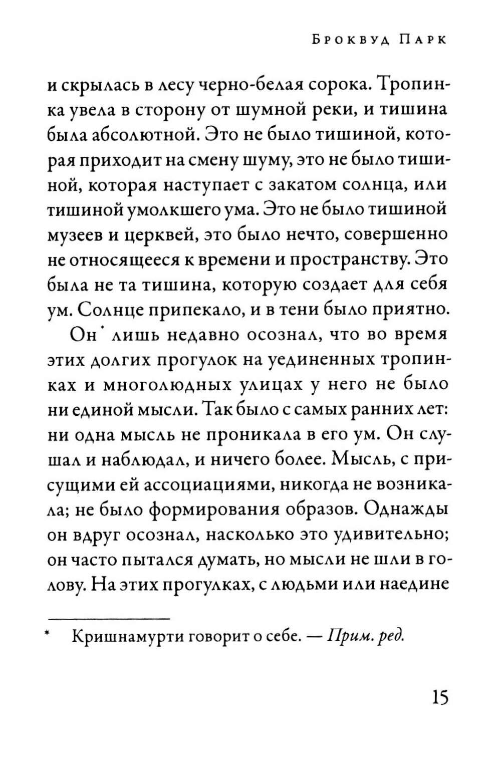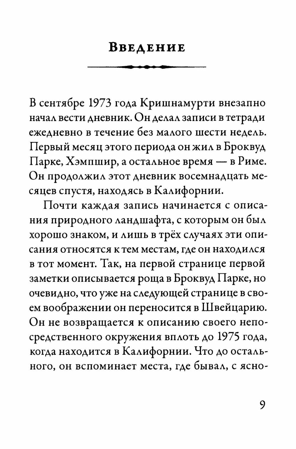 Джидду Кришнамурти - один из наиболее выдающихся духовных учителей XX века, человек, отказавшийся от роли мессии из любви к истине, которую назвал "страной без дорог". Данная книга - дневник Кришнамурти, который он вел с сентября 1973 г. по конец августа 1981 г. Это записи наблюдений природы, наблюдений состояний сознания, глубокие проникновения во внутренний мир человека. В настоящее издание вошли записи, ранее не публиковавшиеся на русском языке, объем которых составил более трети книги. Это новое, полное, издание впервые воссоздает дневник целиком.
