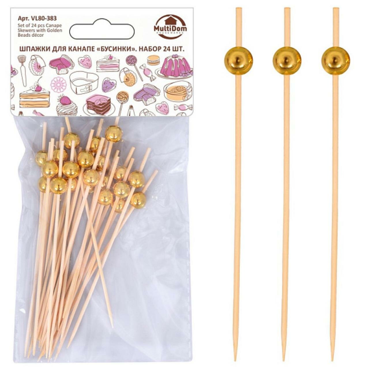 Шпажки для канапе Мультидом Бусинки 24 шт