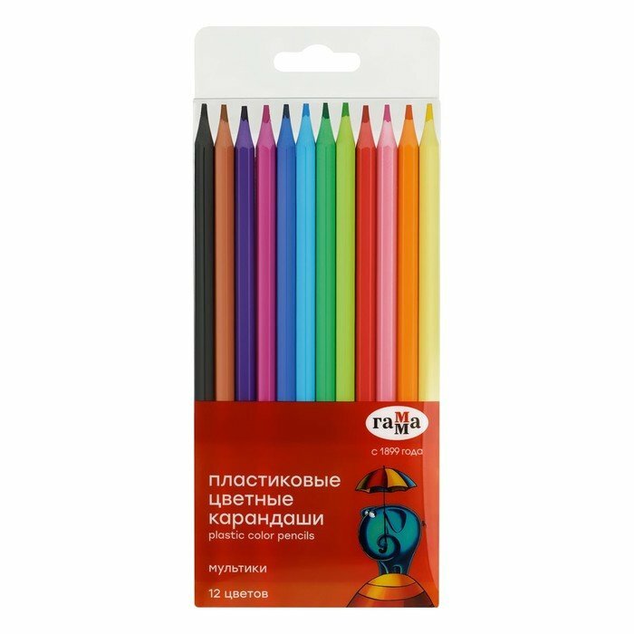 Цветные пластиковые карандаши ГАММА серии Мультики выполнены в стильном шестигранном корпусе из высококачественного пластика. В наборе 12 цветов: желтый, красный, зеленый темный, светло-голубой, темно-коричневый, черный, оранжевый, розовый, зеленый, синий, фиолетовый, фиалковый. Диаметр грифеля 3 мм. Проклеенный ударопрочный грифель не крошится во время заточки и не ломается даже после падения. Корпус карандаша диаметром 7 мм и длиной 174 мм изготовлен из пластика. За яркость и высокую укрывистость отвечают качественные пигменты в составе. Ребенку не придется сильно давить на карандаш рисунок получится ярким и равномерно закрашенным. Упаковка прозрачная пластиковая коробка с европодвесом.