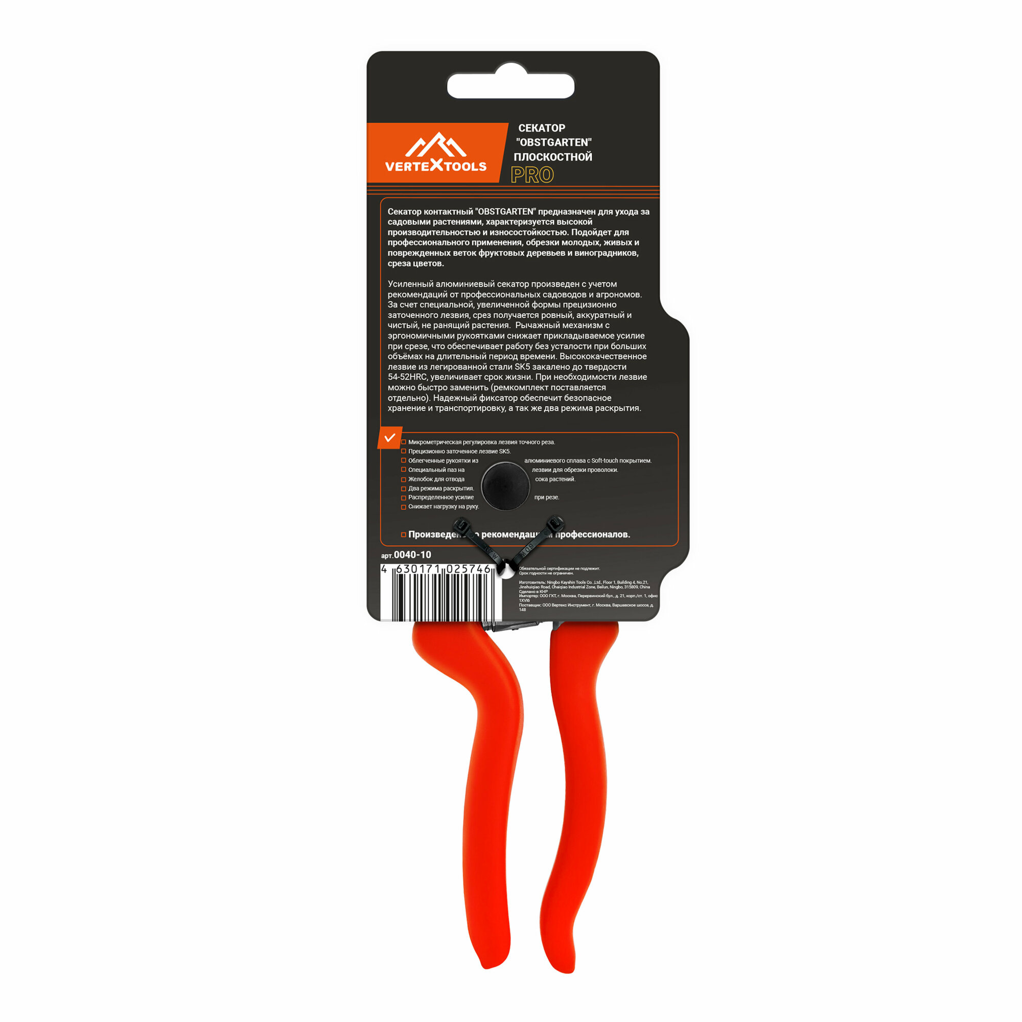 Секатор садовый Vertextools Obstgarten 0040-10 20 мм