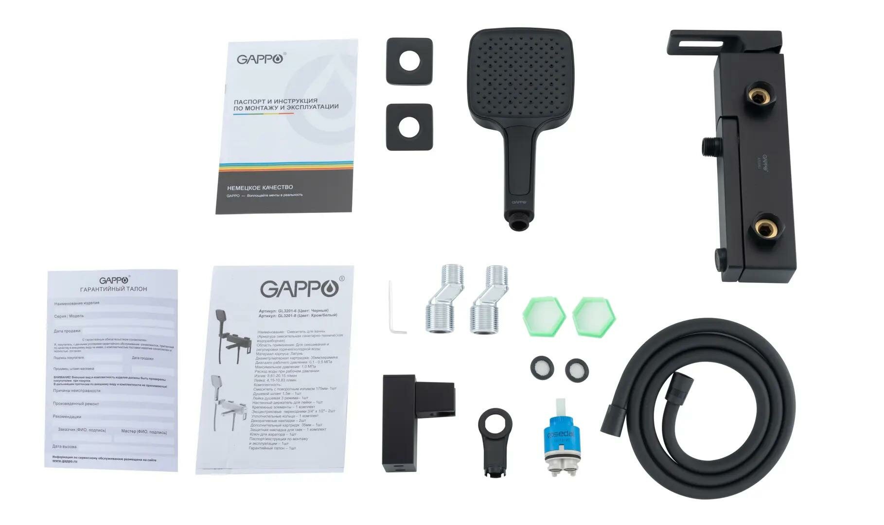 Сервис сравнения цен СкидкаГИД предлагает сравнить цены на товар «Смеситель для ванны Gappo Eder GL3201-6 однорычажный с лейкой и шлангом цвет черный матовый»