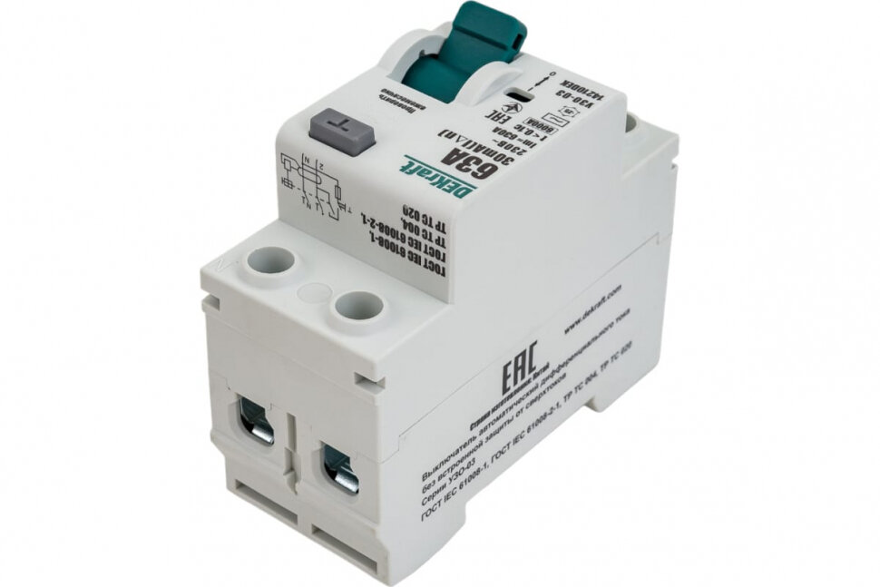 {Выключатель дифференциального тока серии УЗО-03 DEKraft; 2P; номинальный ток 20 А; ном. дифф. ток 30 мА; электромеханический; тип дифференциального расцепителя - AC; ширина and ndash; ВДТ применяются для защиты человека от поражения электрическим током и электроустановок от риска возникновения пожаров вследствие утечек тока. Конструкция устройств позволяет эксплуатировать их даже при низкой температуре. Товар включает в себя только артикул (1 шт.). Проверяйте артикул в официальных источниках, чтобы избежать ошибок. На некоторых фото помимо заказываемого артикула могут быть представлены и другие элементы, которые не входят в текущий товар.