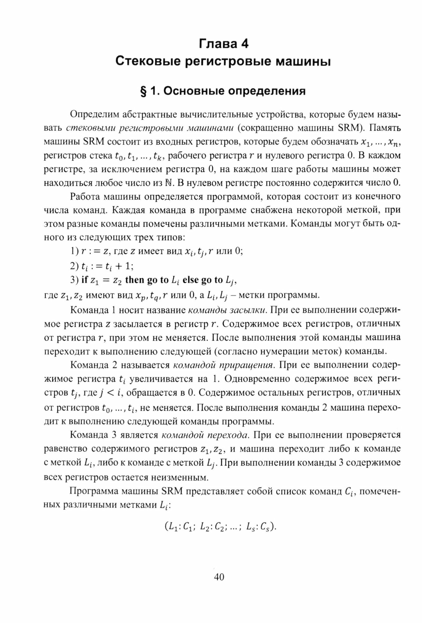 Приводятся определения как хорошо известных вычислительных устройств (машины Тьюринга, машины с произвольным доступом к памяти, машины Минского, двуленточные нестирающие машины Тьюринга), так и некоторых машин, появившихся сравнительно недавно (стековые регистровые машины, регистровые машины со счетчиками, счетчиковые машины с сумматором). Для каждого типа машин излагаются результаты по вычислимым функциям, достаточно полно характеризующие вычислительные возможности рассматриваемого типа машин и связывающие соответствующие классы вычислимых функций с известными классами рекурсивных функций. Для студентов, аспирантов и научных сотрудников, специализирующихся в области дискретной математики и кибернетики.