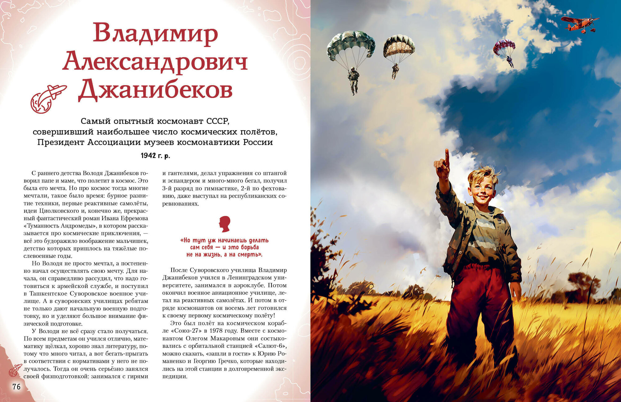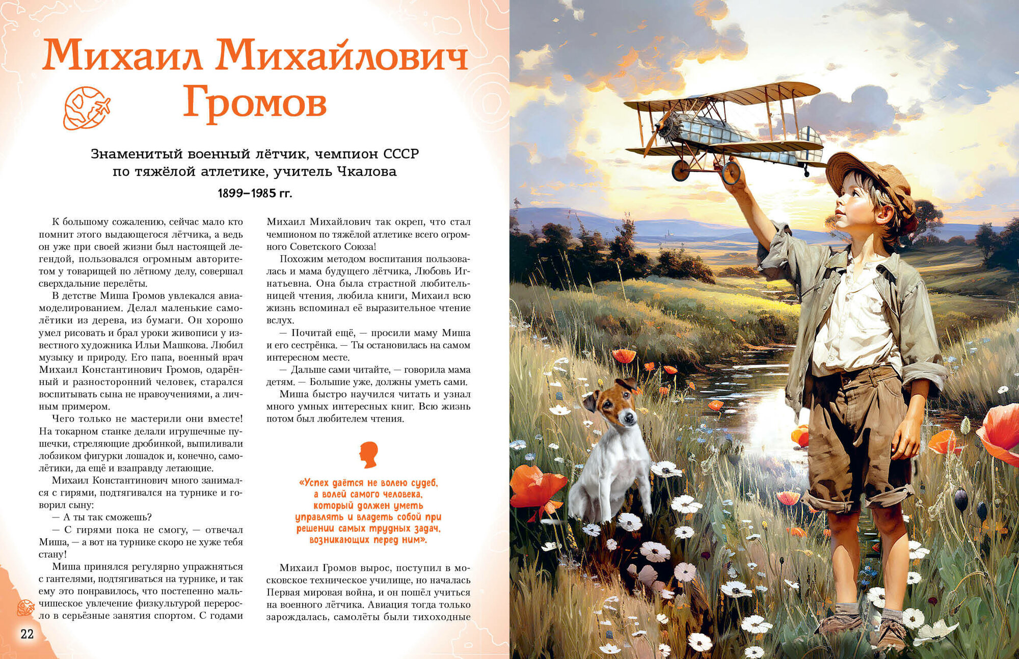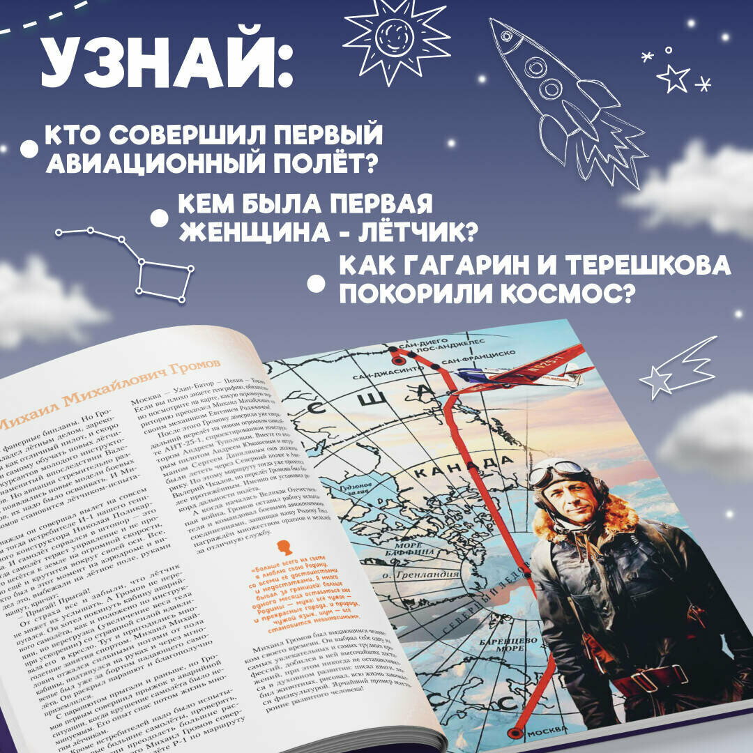 В этой увлекательной книге тебя ждёт 20 историй отечественных авиаторов, лётчиков и космонавтов, чьи имена навсегда прославили Россию. Какие легендарные полёты совершили эти отважные люди? Какими они были в детстве и юности, благодаря чему сумели отыскать своё предназначение, что помогло им преодолеть препятствия на пути и стать сильными, вдохновляющими других личностями? Найди собственный пример для подражания и узнай, какие качества в себе развивать, чтобы стать похожим на великих героев, которыми гордится наша страна! Издание предназначено для среднего школьного возраста.