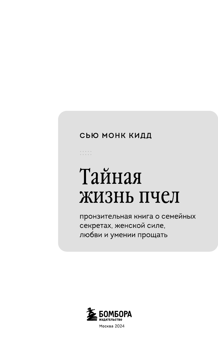 Тайная жизнь пчел. Пронзительная книга о семейных секретах женской силе любви и умении прощать (Сью Монк Кидд); Эксмо, БОМБОРА, 2024