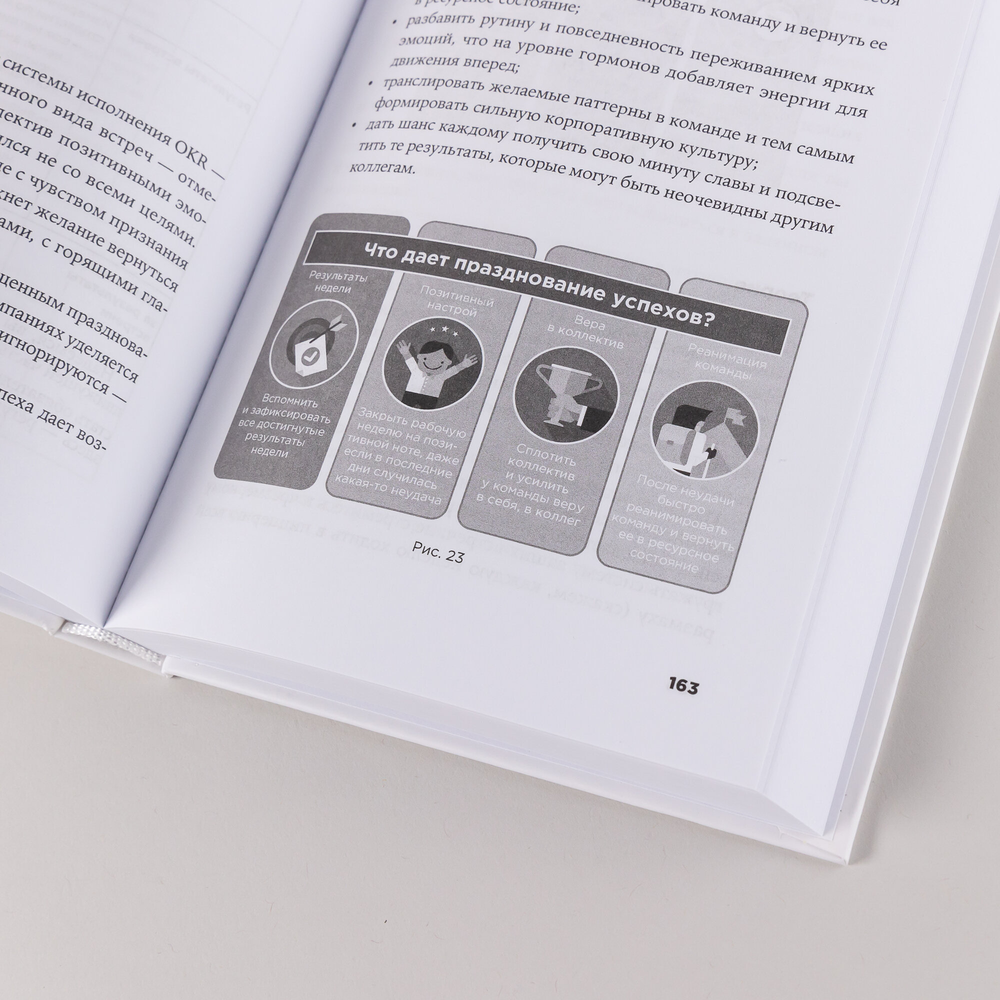 "Мы подробно описываем, что такое OKR, как их формулировать и планировать, как отслеживать прогресс в их выполнении. Мы предлагаем практические советы и инструменты для исполнения OKR, включая сценарии сессии планирования, прогресс-собраний, празднования успехов и сессии-ретроспективы."