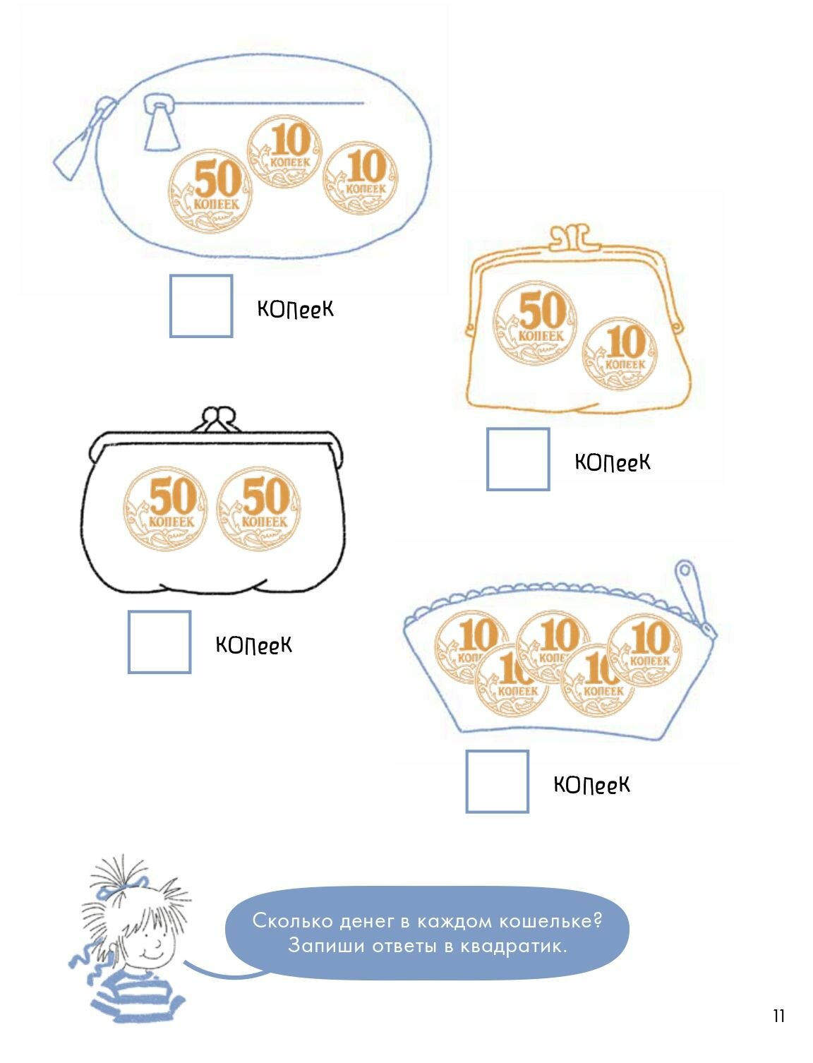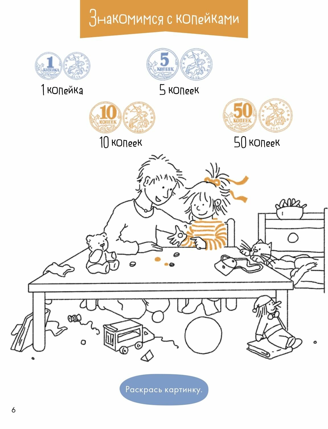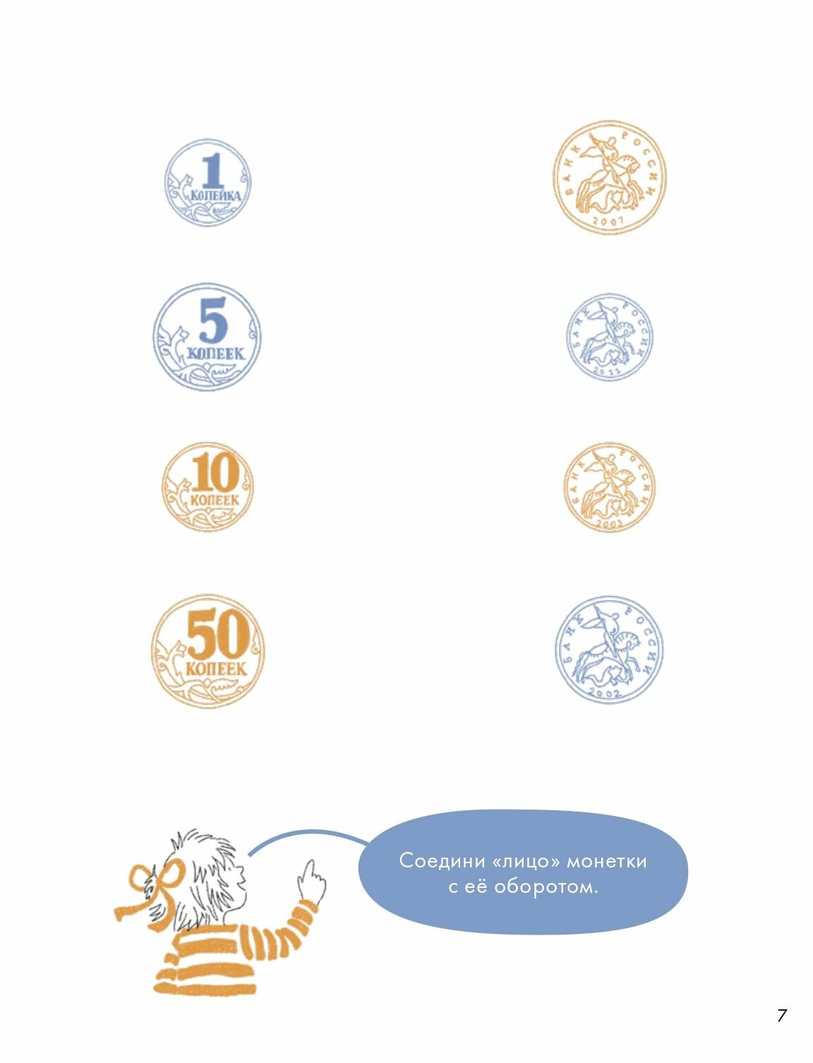 Какие бывают монеты и купюры? Чем они отличаются друг от друга? Сколько копеек в одном рубле? Как посчитать сдачу? Ваш малыш легко запомнит все купюры и монеты и научится их считать с красочными головоломками, находилками и раскрасками.