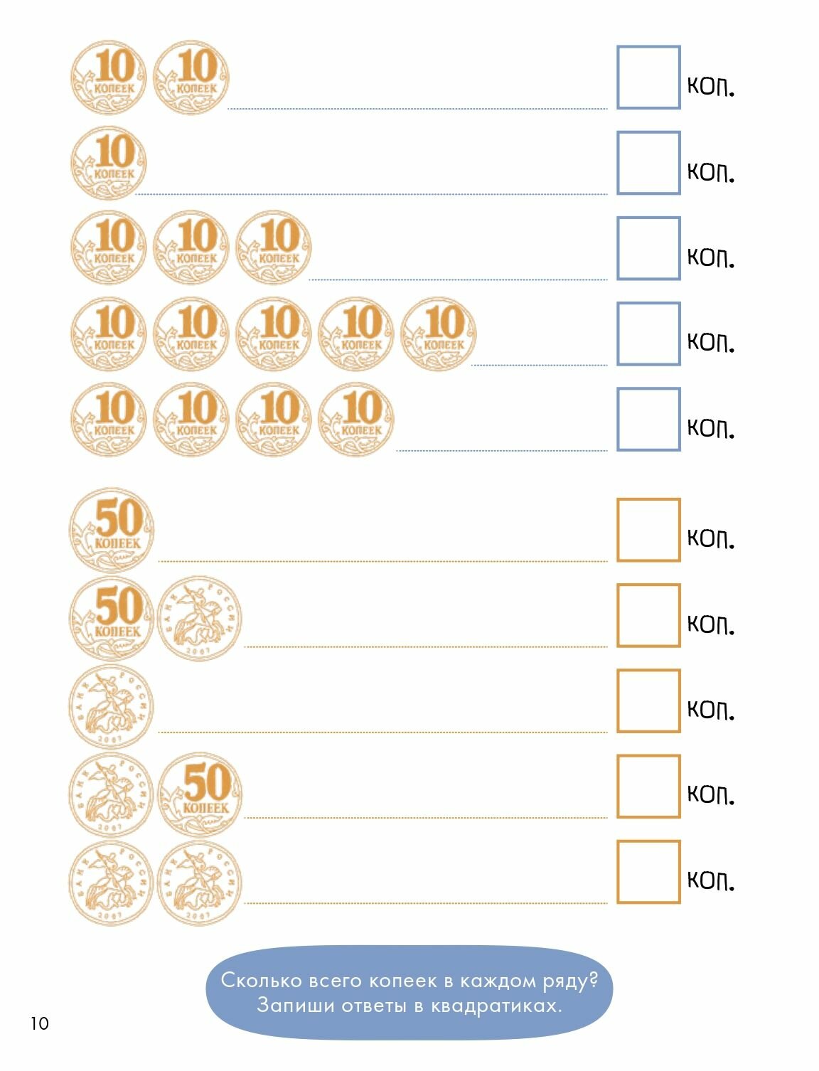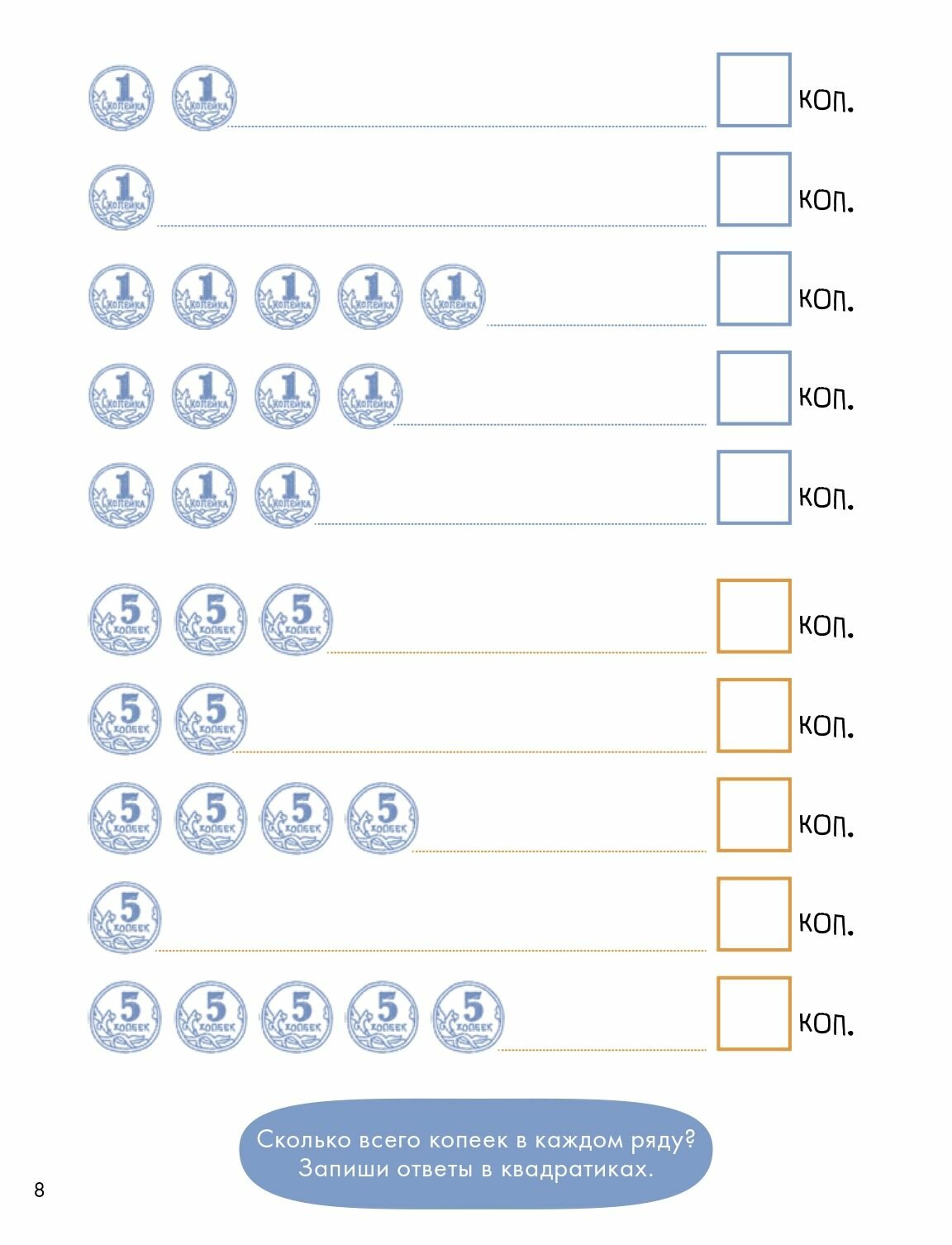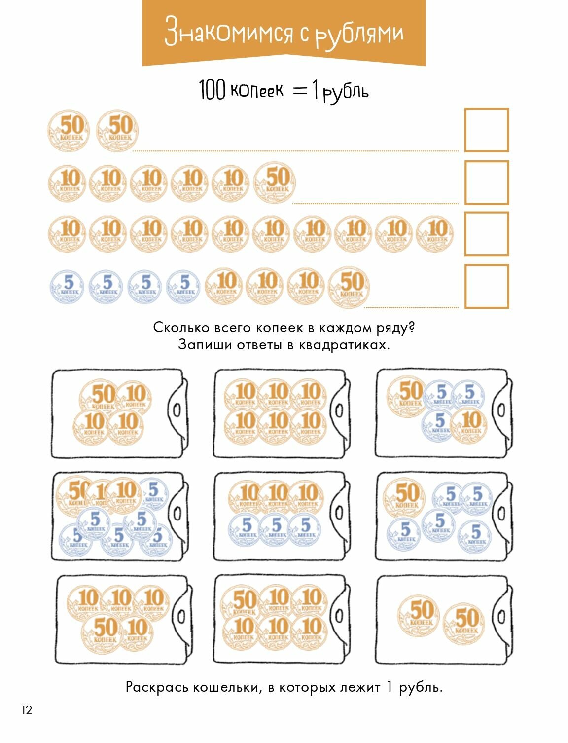 Какие бывают монеты и купюры? Чем они отличаются друг от друга? Сколько копеек в одном рубле? Как посчитать сдачу? Ваш малыш легко запомнит все купюры и монеты и научится их считать с красочными головоломками, находилками и раскрасками.