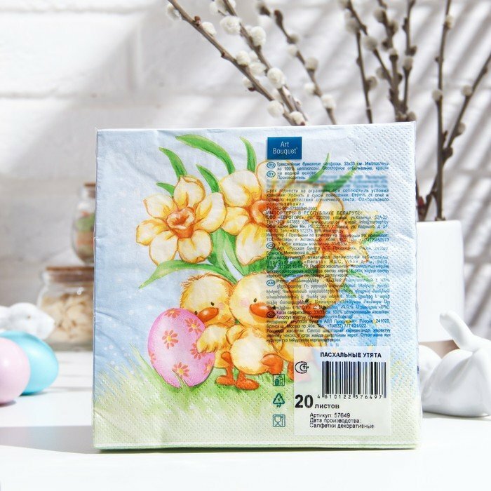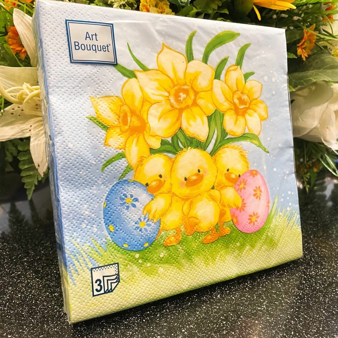 Салфетки бумажные Art Bouguet Пасхальные утята 3 слоя 33 х 33 см 20 шт Art bouquet (размер: 33 x 33 см)