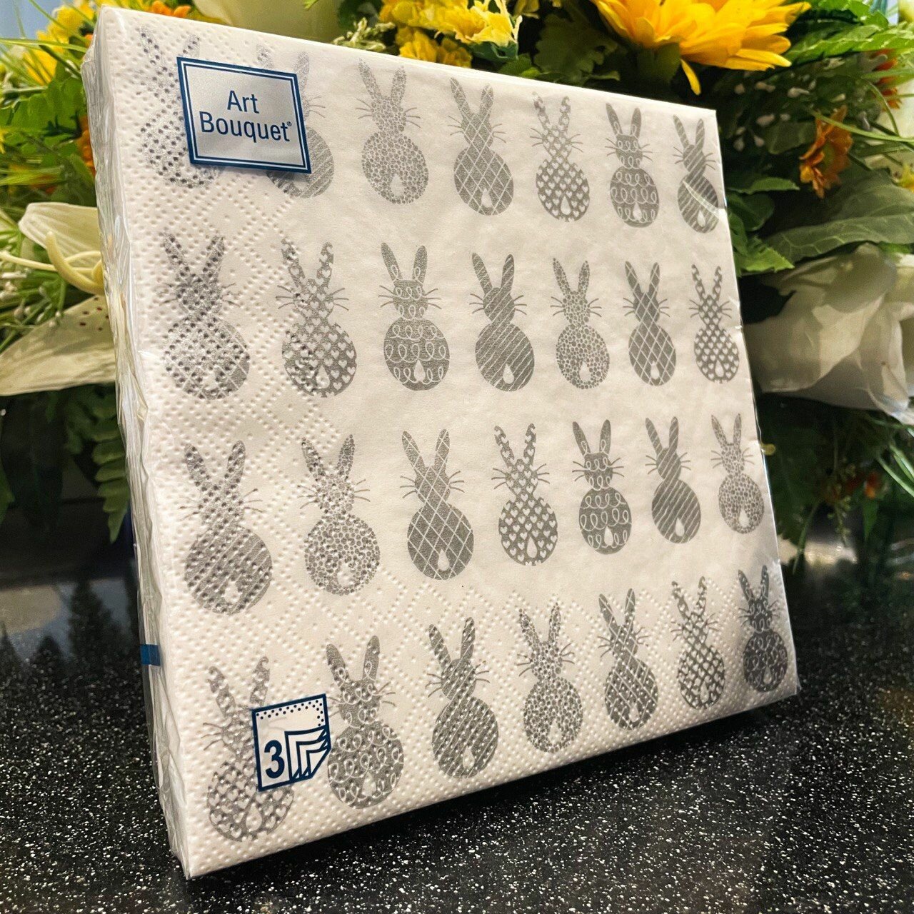 Салфетки бумажные Bouquet Кролики пасхальные мини 3 слоя 33 х 33 см 20 шт Art bouquet (размер: 33 x 33 см)