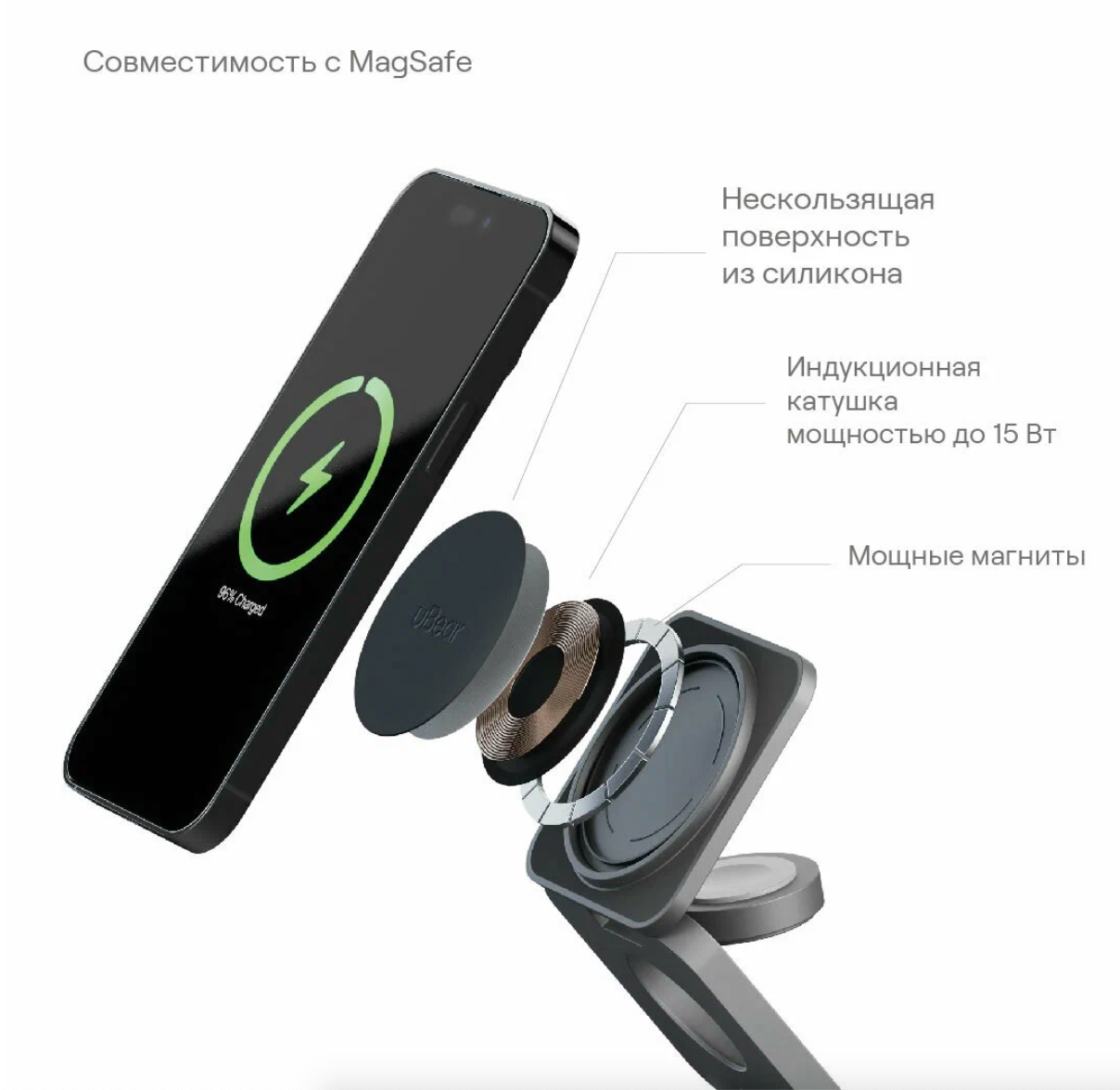 Беспроводное зарядное устройство uBear Balance 3 в 1 MagSafe 25 Вт