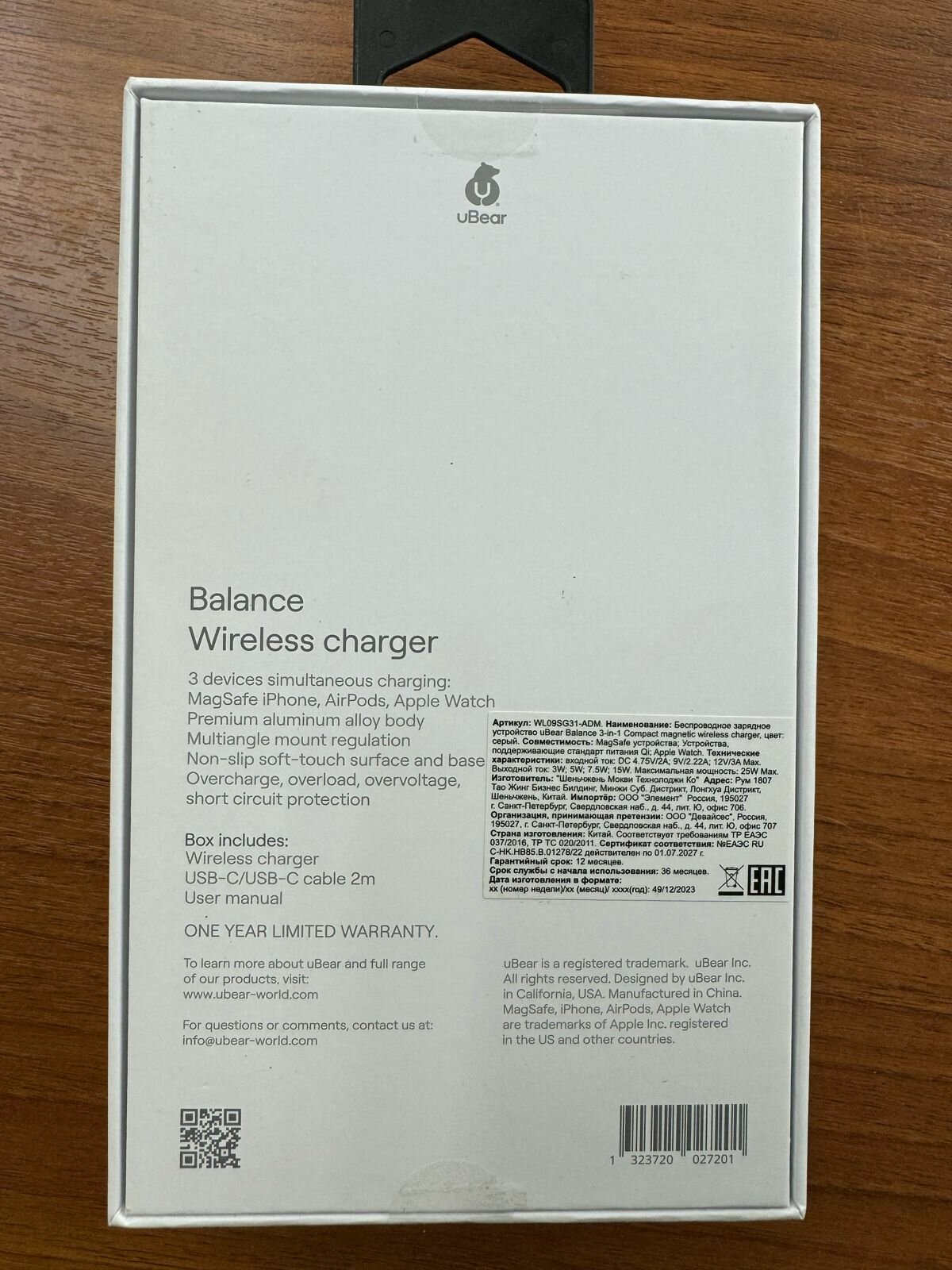 uBear Balance – стильное беспроводное решение с оптимальным функционалом. Минималистичный складной корпус зарядного устройства с поддержкой MagSafe заряжает до трех устройств одновременно. Продвинутые технологии защиты от короткого замыкания, перегрева и перенапряжения.