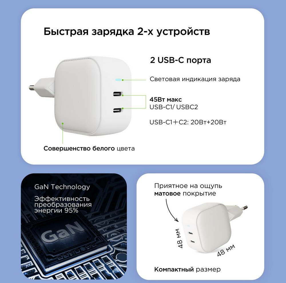 Сервис сравнения цен СкидкаГИД предлагает сравнить цены на товар «Зарядное устройство сетевое VLP G-Charge 45Вт белый G-Charge 2xUSB-C белый»