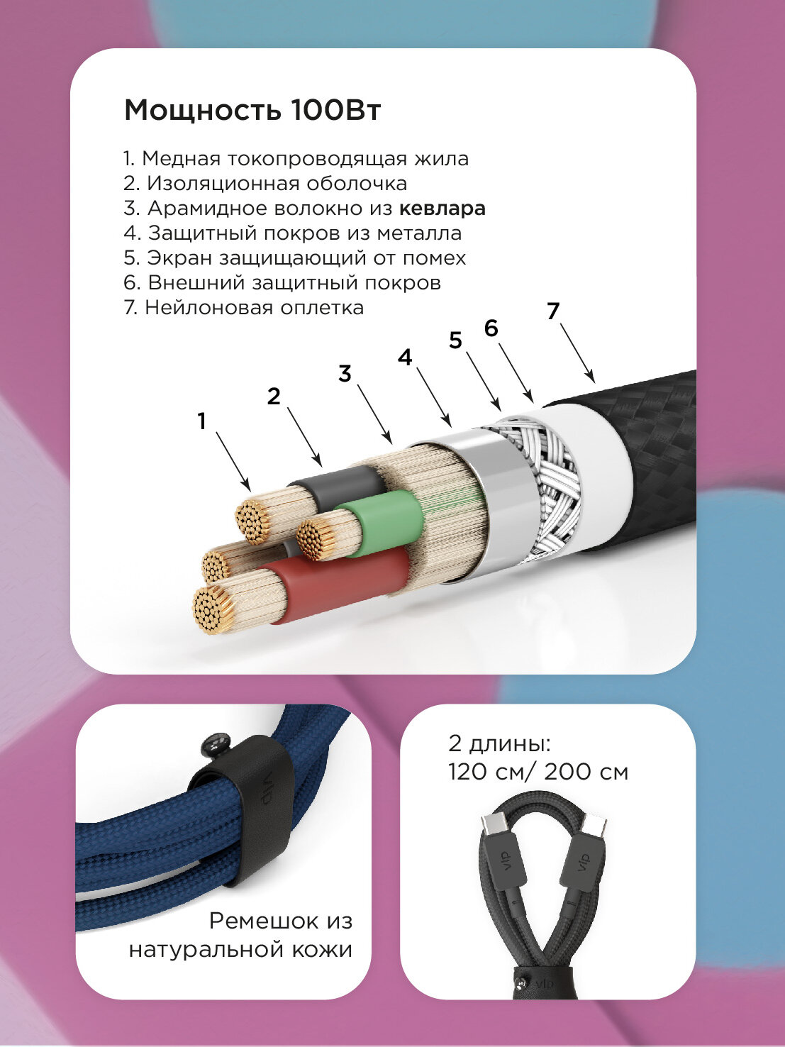 VLP Nylon Cable USB-C - прочный и гибкий кабель в тугой нейлоновой оплетке. Он обеспечивает надежный и безопасный заряд, а также синхронизацию ваших устройств, скорость передачи данных 480 Мбит/с.