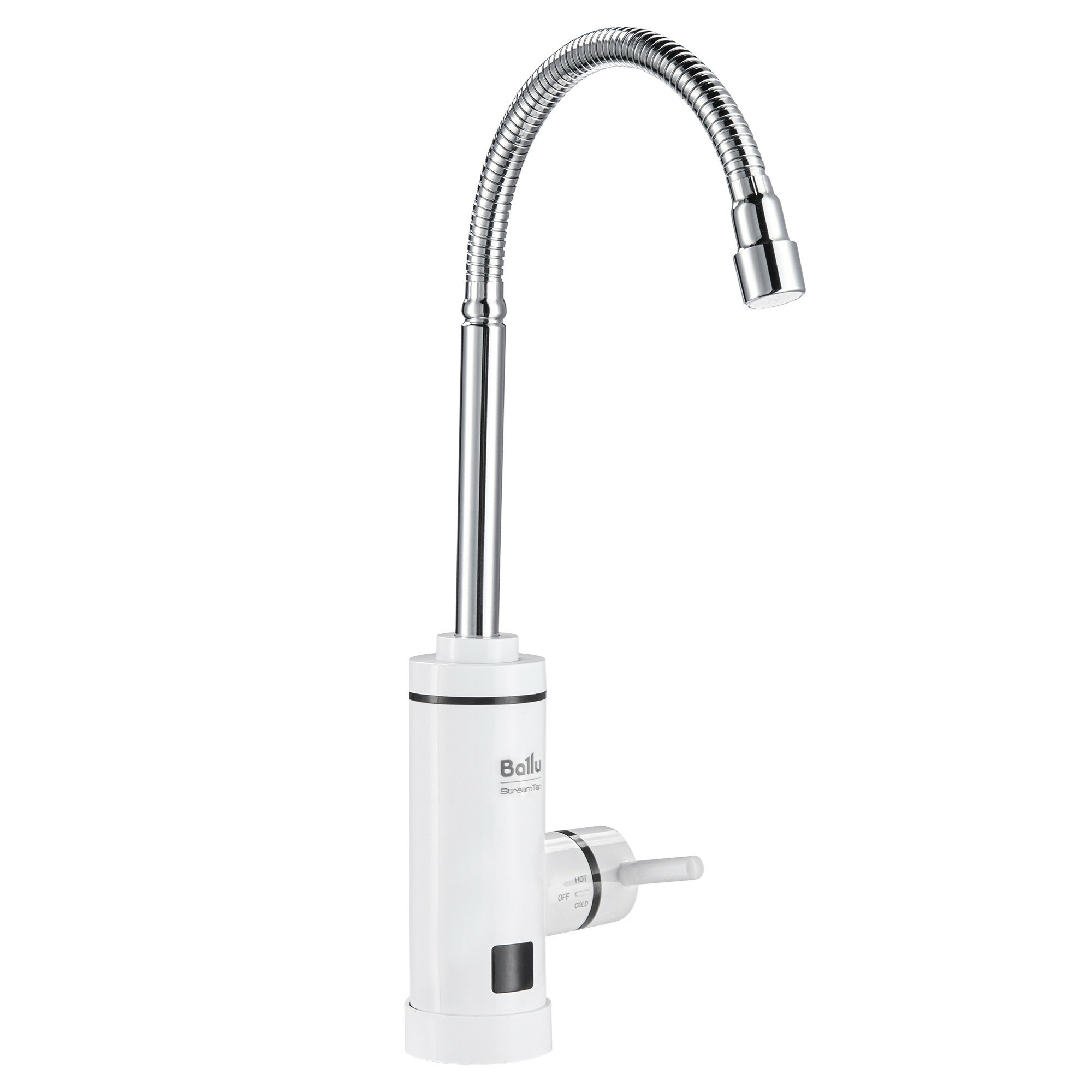 Гарантийный срок: 2 года; Серия: ; Страна производства: КНР; Цвет корпуса: Белый; Тип нагревательного элемента: Трубчатый электронагреватель (ТЭН); Срок службы: 5 лет; Материал внешнего корпуса: Пластик; Материал нагревательного элемента: Сталь; Вид исполнения водонагревателя: Кран на раковину; Макс. температура воды: 60 °С; Ступени мощности обогрева, кВт: 3,30 кВт; Макс. производительность л/мин: 1.3 л/мин; Нагрев воды (дельта температуры): 30° - 60° °С; Гарантийный документ: Гарантийный талон; Вес товара (нетто): 0.77 кг; Высота товара: 16 см; Глубина товара: 6 см; Ширина товара: 10 см; Индикация включения: Да; Индикация температуры нагрева: Нет; Тип дисплея: Нет; Вид управления: Механическое; Точность установки температуры: Механическая регулировка; Регулировка температуры: Да; Количество режимов нагрева: 1; Вариант размещения: Вертикальное; Вид установки (крепления): На раковину/столешницу; Макс. потребляемая мощность: 3.3 кВт; Напряжение электропитания, В: 220 - 240 В; Сетевой кабель: Да (с вилкой); Резьба входного патрубка: 1/2 дюйм; Резьба выходного патрубка: нет дюйм; Макс. рабочее давление: 6 бар; Тип подключения: Нижнее; Мин. рабочее давление: 0,3 бар; Сечение кабеля питания: gt;=2,5 мм2; Тип электроподключения: Стандартная розетка; Область применения: Бытовое оборудование (для домашнего использования); Набор крепежных элементов в комплекте: Да; Насадки в комплекте: Нет; Вес товара с упаковкой (брутто): 1.1 кг; Высота упаковки товара: 26 см; Глубина упаковки товара: 25 см; Ширина упаковки товара: 11 см; Класс пылевлагозащищенности: IPX4; Система самодиагностики неисправности: Нет; Защита от включения без воды: Да; Защита от перегрева: Да; УЗО (устройство защитного отключения): Нет; Автоматическое включение при подаче воды: Да; Ballu Электрический проточный водонагреватель обеспечит мгновенный нагрев воды в квартире, на даче или офисе в течение всего года, исключая зависимость от сезонно-профилактических и ремонтных работ систем теплоснабжения. Компактная модель предназначена для установки вместо обычного смесителя. Прибор прост в монтаже. Чтобы воспользоваться горячей водой уже в день покупки прибора, достаточно заменить привычный кран на водонагреватель и подключить его к розетке. Гибкий шланг-излив Гибкий шланг-излив решает сразу несколько актуальных задач. Он позволяет регулировать высоту подачи воды, дает возможность направлять струю воды в любое нужно место, с ним легко и удобно ополоснуть фрукты, овощи, раковину и наполнить водой любую емкость. Такой кран оптимально подходит для установки на двойную мойку, делая эксплуатацию наиболее комфортной. Мгновенный нагрев Производительность нагревательного элемента составляет 3,3 кВт. Это дает возможность мгновенно нагревать до 1,5 л воды в минуту. Такого объема достаточно для мытья рук, посуды. Индикация нагрева Индикация на корпусе прибора проинформирует о состоянии прибора. При включении нагревательного элемента на корпусе прибора загорается индикатор, информирующий о начале процесса нагрева воды. При отключении нагрева индикатор гаснет. Простая установка Для монтажа проточного водонагревателя не требуются специальные навыки, профессиональные инструменты или дополнительные запчасти. Достаточно установить водонагреватель на раковину вместо обычного смесителя, подключить устройство к розетке и пользоваться го