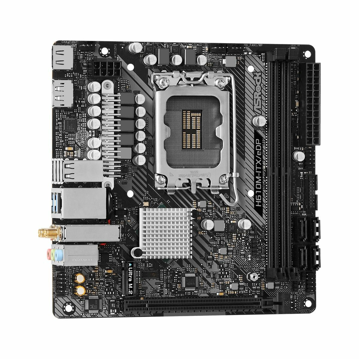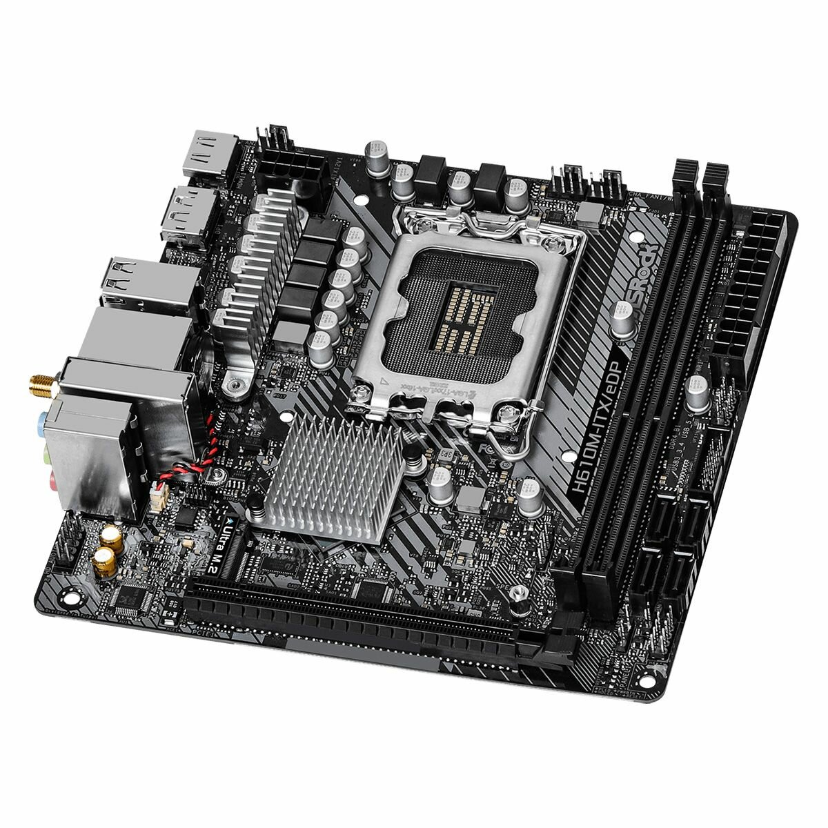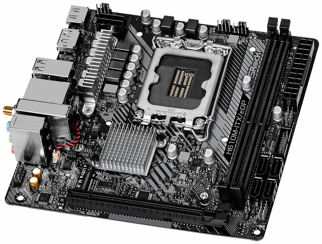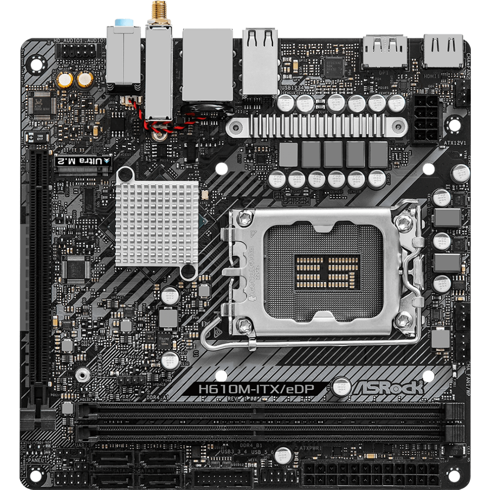 Материнская плата mini-ITX ASRock (LGA1700 H610 2*DDR4 (3200) 4*SATA 6G M.2 PCIE Glan WiFi BT HDMI DP 2*USB 3.2 4*USB 2.0) R H610M-ITX/EDP
