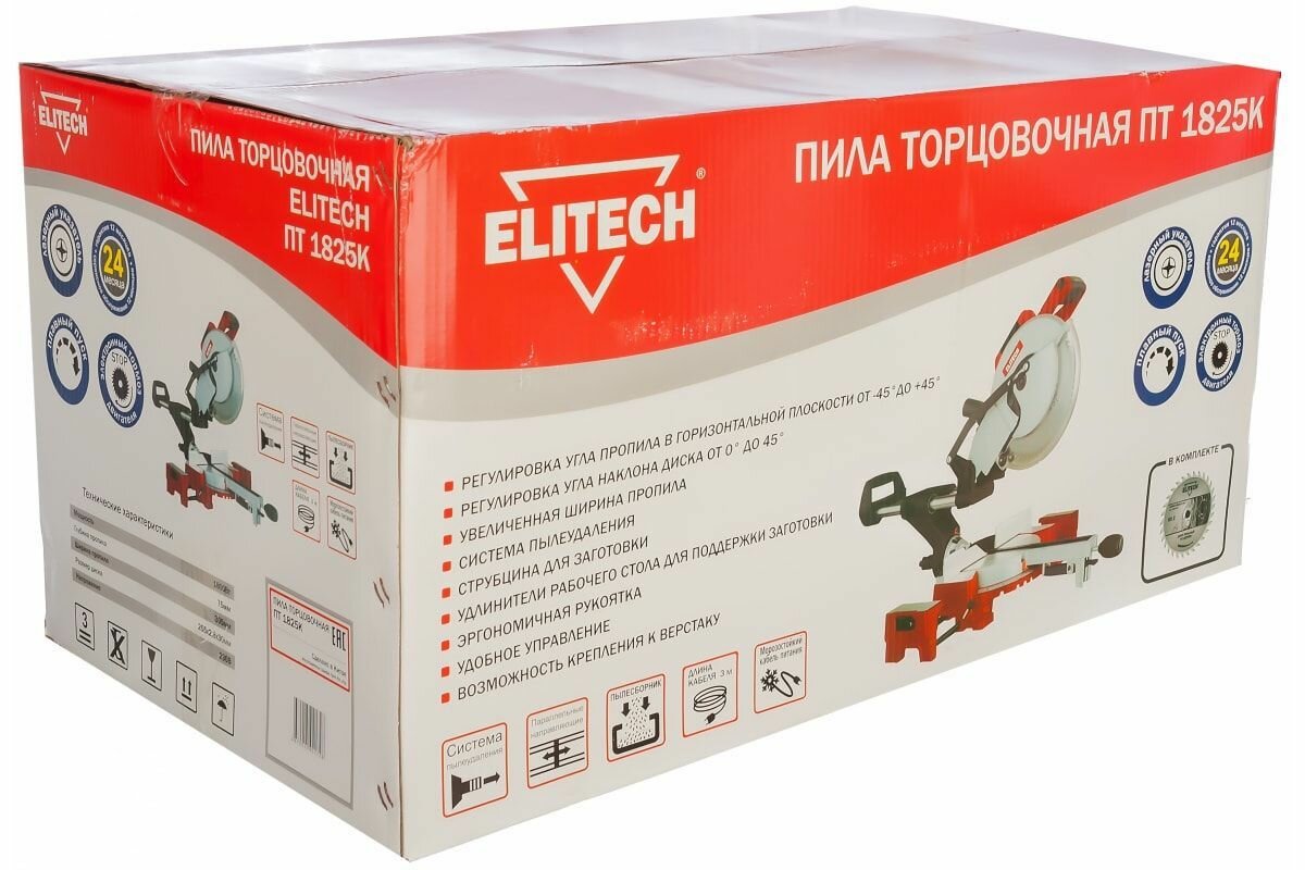 - Распаковка. Пила торцовочная ELITECH ПТ 1825К