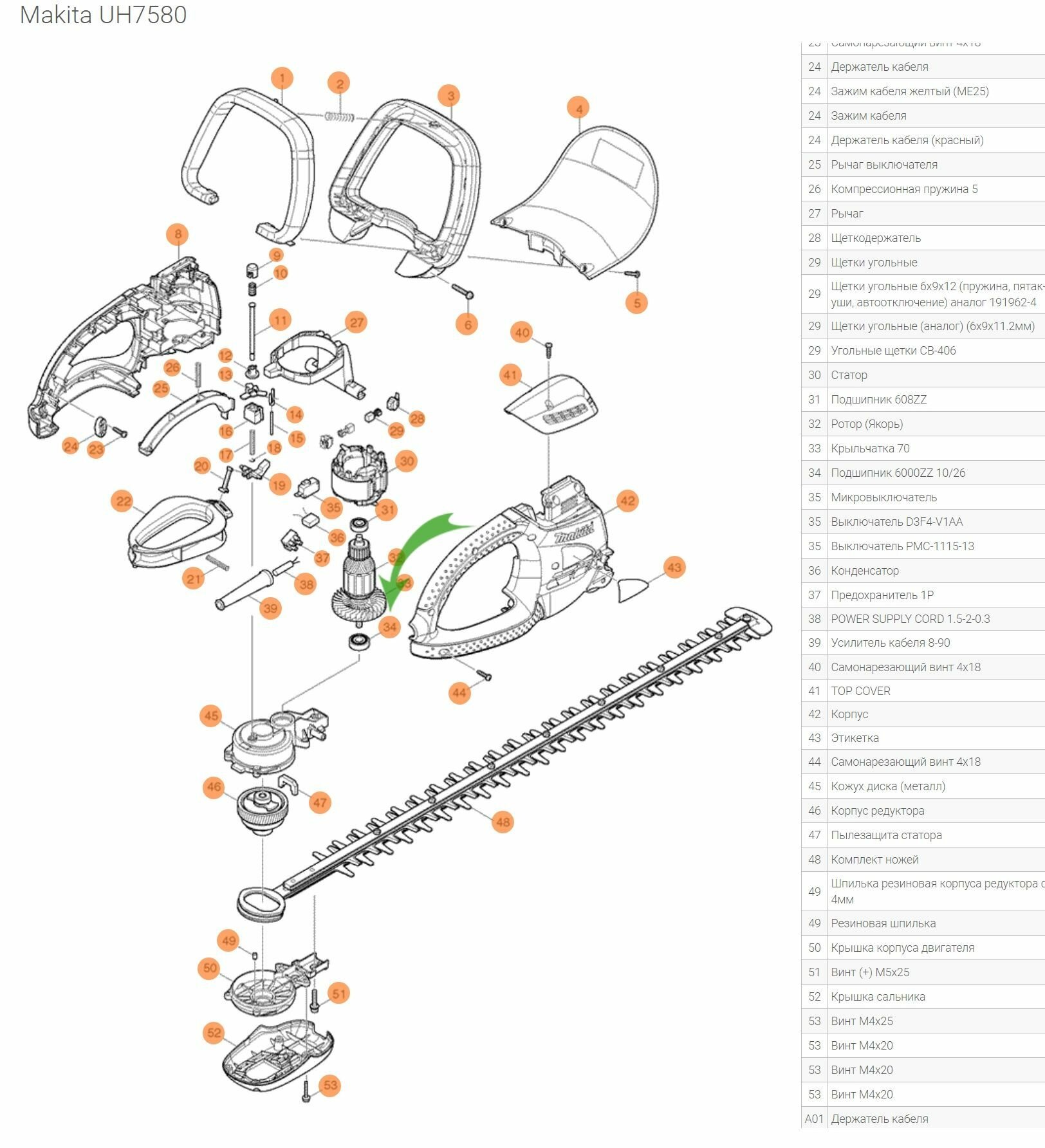 Кусторез Makita - это удобный в работе инструмент с надежным электродвигателем. Он потребляет 670 Вт энергии, тихо работает и у него отсутствуют токсичные выхлопы. Длина режущего элемента - 75 см. Он покрыт специальным покрытием, гарантирующим чистый и аккуратный срез, а также долговечность и простую очистку инструмента. Эта модель без труда справится с ветками толщиной до 21 мм. Рукоятки покрыты специальным эластомером и имеют удобную эргономичную форму для надежного удержания инструмента.